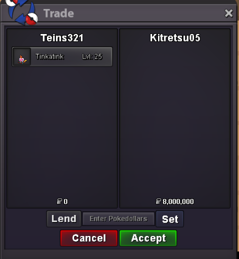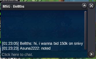 Ends 24 hrs of starting bid S.O 4m Min Bid: 500k ACCEPTED PAYMENTS: Pokedollars Reroll Ticket (700k ea) Nature Reroll (350k ea) Capsule Coins: (450k) Rules: Please include the account name you will be using for the transaction if you are not purchasing with your main account. 15 Minute Rule: If a bid is received in the final 15 minutes of the auction, the end point will be delayed by 15 minutes from that bid. This delay will repeat with each new bid until the current offer has stood for a full 15 minutes. (insta 22m)