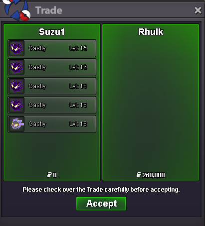 Ends 24 hrs of starting bid S.O 7m Min Bid: 200k ACCEPTED PAYMENTS: Pokedollars Reroll Ticket (700k ea) Nature Reroll (350k ea) Capsule Coins: (450k) Rules: Please include the account name you will be using for the transaction if you are not purchasing with your main account. 15 Minute Rule: If a bid is received in the final 15 minutes of the auction, the end point will be delayed by 15 minutes from that bid. This delay will repeat with each new bid until the current offer has stood for a full 15 minutes. (Insta 15)
