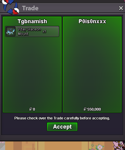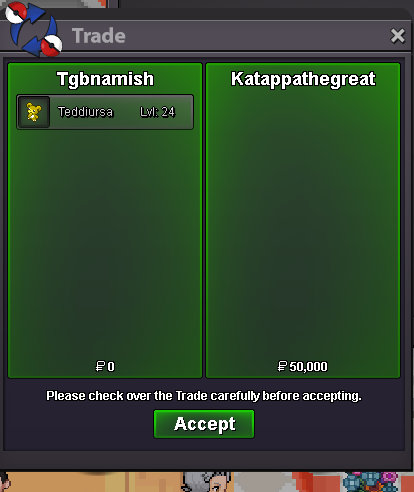 Current Offer: 100k by I3dontknow32 Start Price: 100k End Point: (13:00 GMT+1) Minimum Raise: 100k Accepted Payments: Pokedollars, Coin Capsules (x1 Coin Capsule = 500k), IV Reroll Tickets (x1 IV Reroll Ticket = 700k)