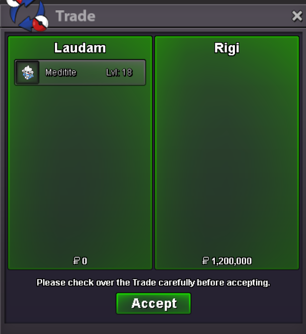 Auction Details: Start: 1.2m End : 48 hours (after start ) Minimum Raise: 100k Accepted Payments: Pokedollars, : Coin Capsules (1x CC= 500k ea), : IV Reroll Tickets (1x IV Reroll= 700k ea) Server Name: Gold Important Reminders: This is a Gold Server auction. If bidding from an alternative server, state that you will transfer upon winning. If you intend to purchase with an alt account, specify the account alongside your bid. 15 minutes rule is applied. (If a bid is received in the final 15 minutes of the auction, the end point will be delayed by 15 minutes from that bid, and will be delayed by 15 minutes for each new bid thereafter, until the current offer has been held for a full 15 minutes) Please check the Trade Rules and Auction Rules if you are new to trading in PRO. Contact Information: IGN : InfamousRo Discord: infamous_ro Happy Bidding!