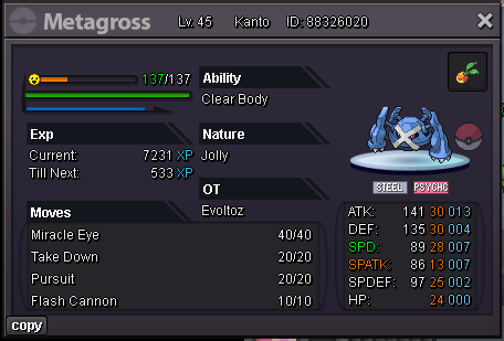 Mavywavy started following Metagross, Jolly, Clear Body, 31/27/31/31/23/31 (31x4), 23+