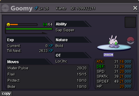 Start price:10m End point:48 hours (after start price is met) Insta Price: 50m Minimum Raise: 500k Accepted Payments: Pokedollars, Coin Capsules (x1 Coin Capsule = 500k) Important Reminders: This is a Silver Server auction. If bidding from an alternative server, state that you will transfer upon winning. If a bid is received in the final 15 minutes of the auction, the end point will be delayed by 15 minutes from that bid, and will be delayed by 15 minutes for each new bid thereafter, until the current offer has been held for a full 15 minutes.