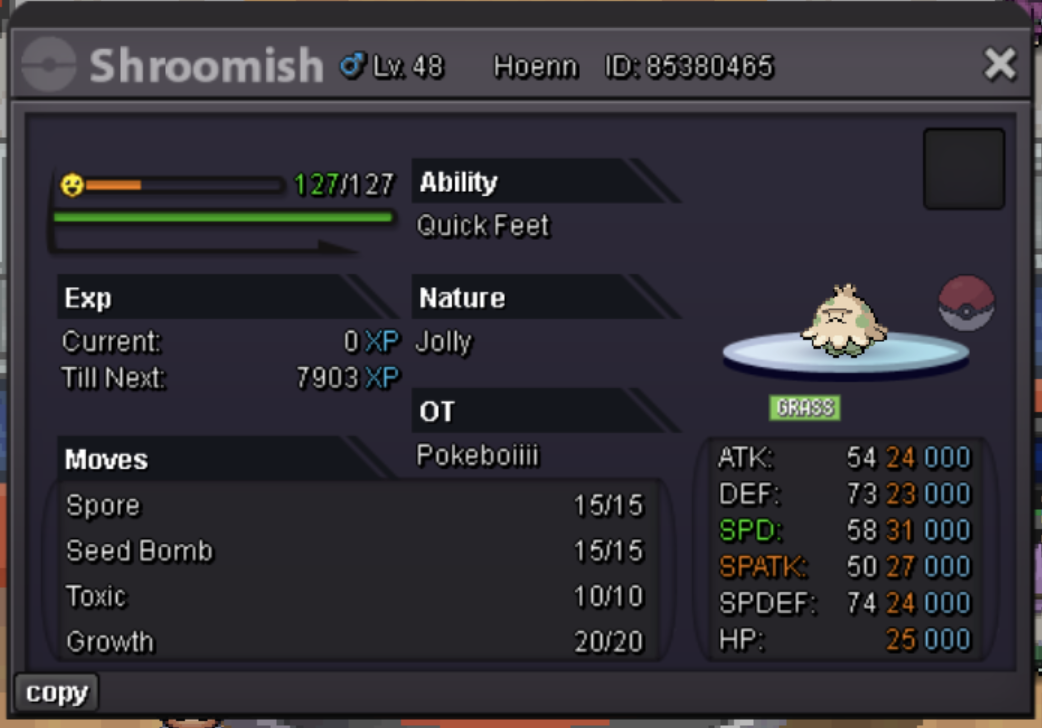 Pokeboiiii started following Auction Shroomish Jolly Quick Feet 31spd 23+