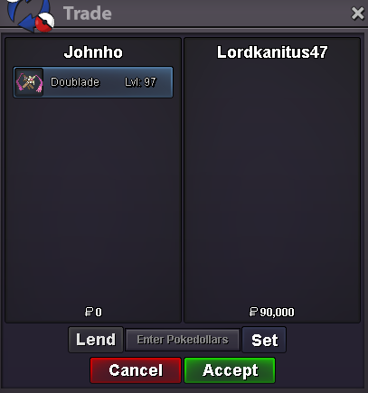 bundle auction Trainer tower ready Lv39 Lv69 Lv100 Fullset. (Moxie 22+ Gyarados) *Please note that at levels 39 and 69, you’ll need to use an alt account to lend it to your main account. Start : 150k min : 50k insta/ Auction : 24h after first bid (15min Auction rule) Accepted Payments: Pokedollars, Coin Capsules (x1 Coin Capsule = 500k), IV Reroll Tickets (x1 IV Reroll Ticket = 750k)