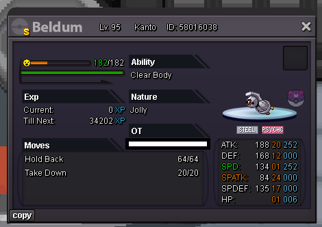 Lacomus started following [Very Rare] Shiny Beldum (Jolly) - Master Ball (M: Metagross)