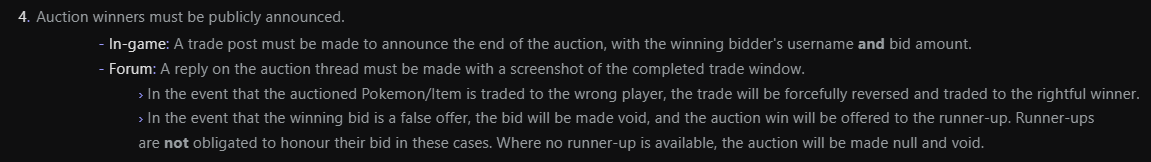 8. Hello @Hrlyquinn You have been punished as Jmun was not the rightful winner of the auction. The bid was received hours after the ending point. As the outcome is out of my hands to correct, you have been punished. Please read the Auction Rules to avoid further punishment in the future. I will now lock this thread. All the very best. - Rebilak