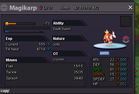 Auction Details: Start Price: 20m End Point: 48 hours (after start price is met) Insta Price: N/A Minimum Raise:500k Accepted Payments: Pokedollars, Coin Capsules (x1 Coin Capsule = 450k), IV Reroll Tickets (x1 IV Reroll Ticket = 600k) Important Reminders: This is a Gold Server auction. However, you may bid from any server, but the winner it is responsible to get the pokemon on GOLD Server. If you intend to purchase with an alt account, specify the account alongside your bid. If a bid is received in the final 15 minutes of the auction, the end point will be delayed by 15 minutes from that bid, and will be delayed by 15 minutes for each new bid thereafter, until the current offer has been held for a full 15 minutes. Happy Bidding! :PikaLurk: