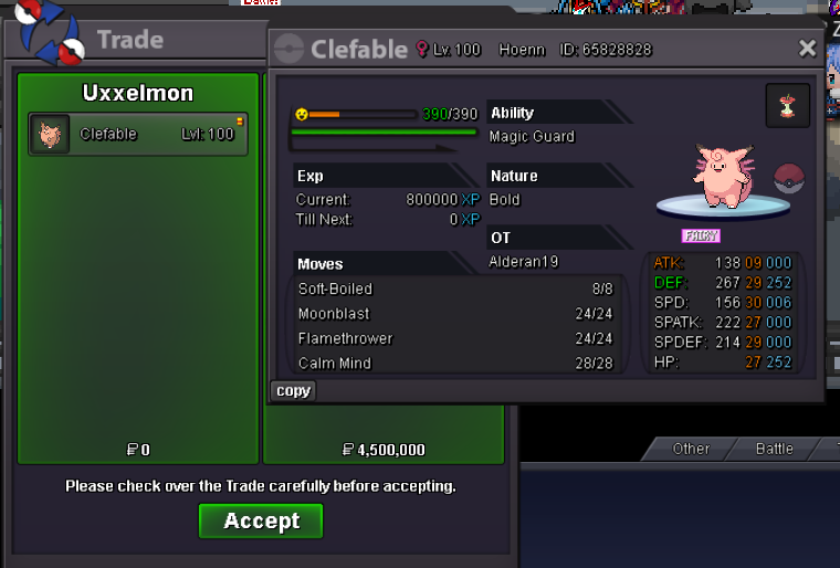 Details: Start Price : 1m Min Bid: 250k Insta: N/A End point: 48 hours after initial bid Accepted Payment: Pokedollars, Coin Capsules (x1 Coin Capsule = 500k) This is a silver Server auction. You may bid from any server but you must transfer to silver Server upon winning the auction. You may place bids here or in game