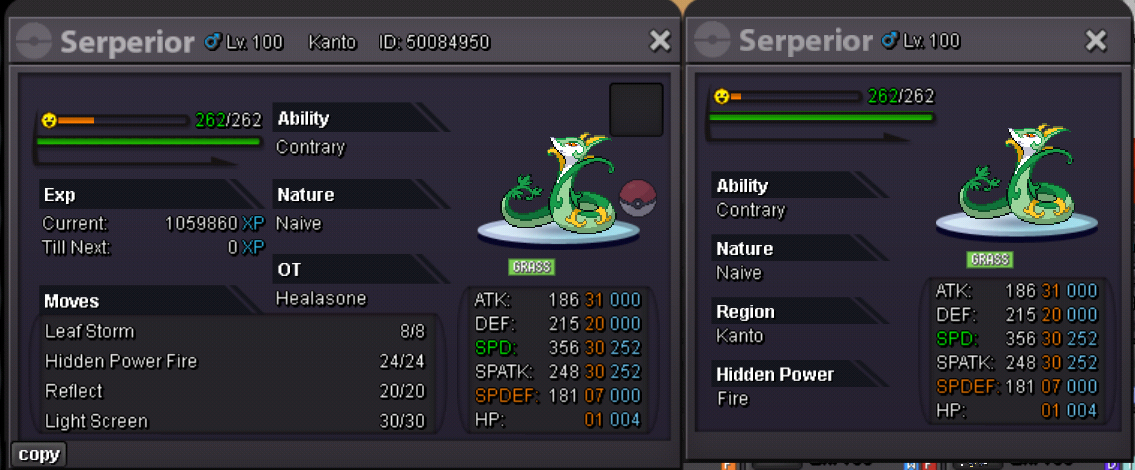 •Bundle Auction includes "Contrary Naive hp fire 30×30 serperior" and "31×31 Jolly Charizard". Auction Details: Start Price: 2m End Point: 48 hours (after start price is met) Insta Price: 20m Minimum Raise: 200k Accepted Payments: Pokedollars & Coin Capsules (x1 Coin Capsule = 450k) Important Reminders: This is a Cross Server auction. You may bid from any server, and I will transfer to your preferred server upon winning. If you intend to purchase with an alt account, specify the account alongside your bid. If a bid is received in the final 15 minutes of the auction, the end point will be delayed by 15 minutes from that bid, and will be delayed by 15 minutes for each new bid thereafter, until the current offer has been held for a full 15 minutes.