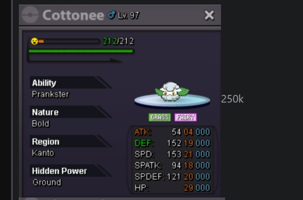 S.o = 5m, min bid = 250k. Insta price = 17m. Duration of the auction = 50 hours Payment = Pokedollars, CC(500k). If you bid with an alt or from the gold server please mention it with your bid. This is a silver auction only.