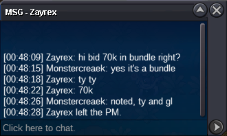 Auction Rules - Start: 500k - Min. Raise: 50k - Insta: 1.5m - Duration: 72 hours from first bid Accepted payments: Money Only - Server: Gold, Silver players may bid but are responsible for the transfer - Timer: https://countingdownto.com/?c=6714794 GOOD LUCK