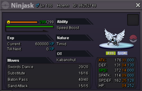 Start Price: 2m End Point: 24 hours (after start price is met) Insta Price: 8m Minimum Raise: 100k Accepted Payments: Pokedollars, Coin Capsules (x1 Coin Capsule = 500k), IV Reroll Tickets (x1 IV Reroll Ticket = 750k) Important Reminders: This is a Silver Server auction. If bidding from an alternative server, state that you will transfer upon winning. If a bid is received in the final 15 minutes of the auction, the end point will be delayed by 15 minutes from that bid, and will be delayed by 15 minutes for each new bid thereafter, until the current offer has been held for a full 15 minutes.