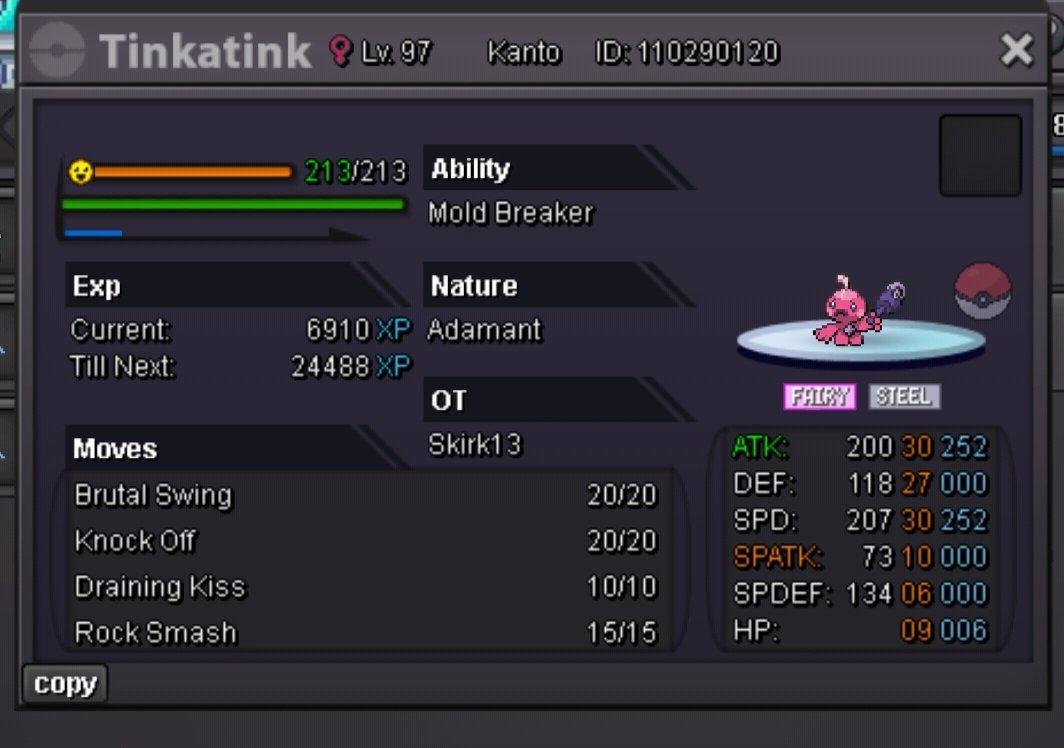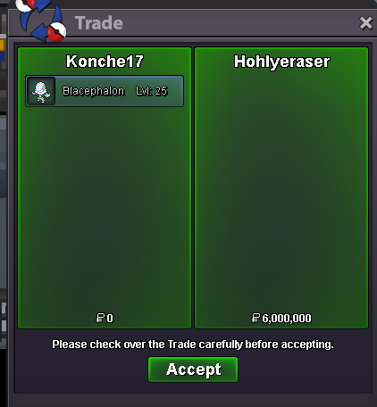 Details: Start Price : 2m Min Bid: 250k Insta: n/a End point: 48 hours after initial bid Accepted Payment: Pokedollars, Coin Capsules (x1 Coin Capsule = 500k) This is a silver Server auction. You may bid from any server but you must transfer to silver Server upon winning the auction. You may place bids here or in game. The 15 Minute rule will go into effect if a bid is placed in the last 15 minutes