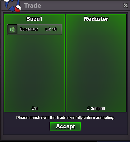 Start Price: 900k End Point: 48 hours (after start price is met) Insta Price: N/A Minimum Raise: 200k Accepted Payments: Pokedollars, Coin Capsules (x1 Coin Capsule = 500k)