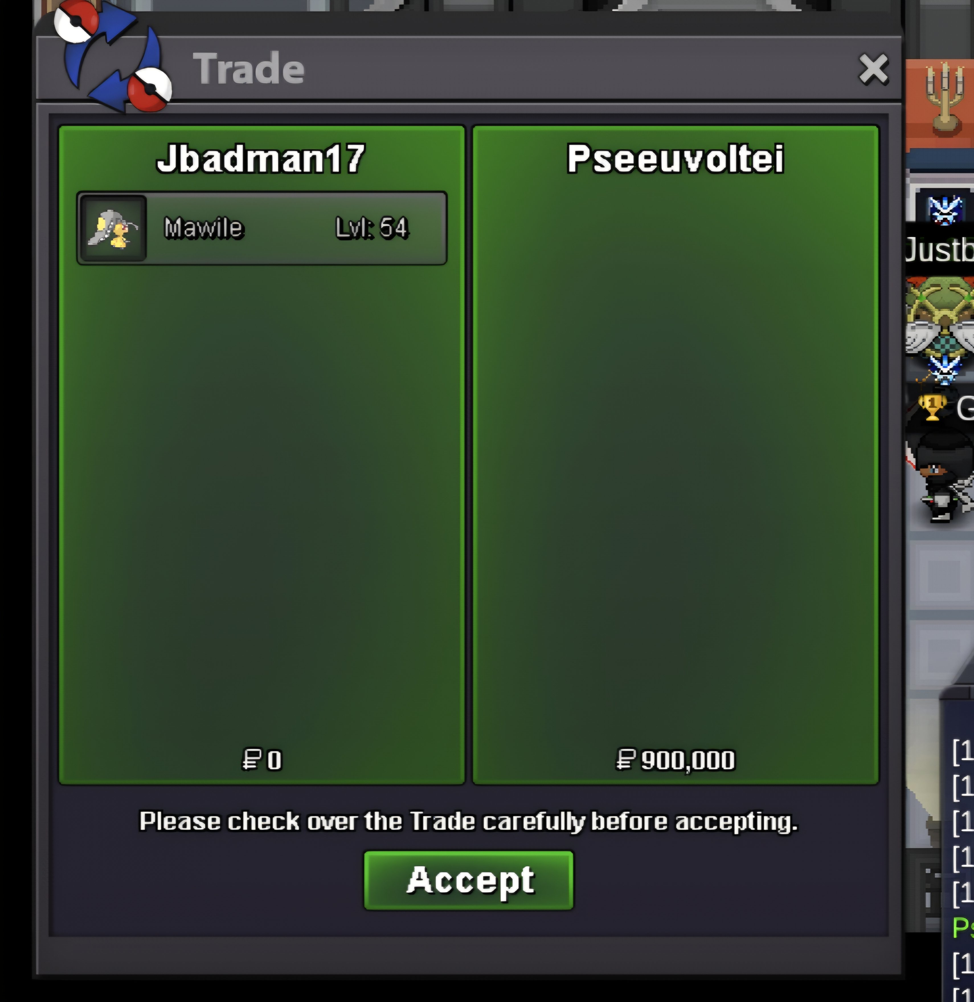 - Starting Price : 2,5M - Minimum Raise : 100k - Insta : 5,5M - Accepted Payments : Pokedollars -Time Duration : 2 days/48 hours 15min Rule