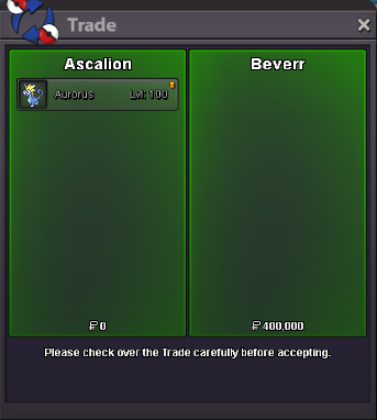 Start Price: 1.2m End Point: 48 hours (after start) Min Raise: 150k Accepted Payments: Pokedollars, IV Reroll Tickets (x1 IV Reroll Ticket = 700k)
