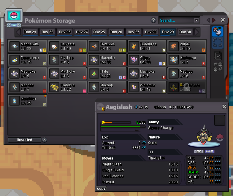 2. Hello , My player name is Tigang1er (silver server). I gave my Pokémon to a player for EV training, a shiny Aegislash, and he forgot to tell me that he didn't have the Hoenn region unlocked, so my Pokémon is stuck on his computer and he can't give it back to me. the player name is : Innawoods (silver server) the pokemon ID : 109231453 thanks for the help here and thanks for the discord support help and for zarachi too on silver