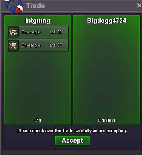 Start Price: 2m End Point: 48 hours (after start price is met) Insta Price: N/A Minimum Raise: 200k Accepted Payments: Pokedollars, Coin Capsules (x1 Coin Capsule =480k), IV Reroll Tickets (x1 IV Reroll Ticket = 700k)