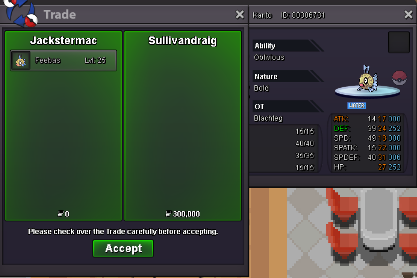 Start Price: 1m End Point: 48 hours (after start price is met) Insta Price: N/A Minimum Raise: 100k Accepted Payments: Pokedollars, Coin Capsules (x1 Coin Capsule = 450k), IV Reroll Tickets (x1 IV Reroll Ticket = 700k) Important Reminders: This is a Cross Server auction. You may bid from any server, and I will transfer to your preferred server upon winning. If a bid is received in the final 15 minutes of the auction, the end point will be delayed by 15 minutes from that bid, and will be delayed by 15 minutes for each new bid thereafter, until the current offer has been held for a full 15 minutes.