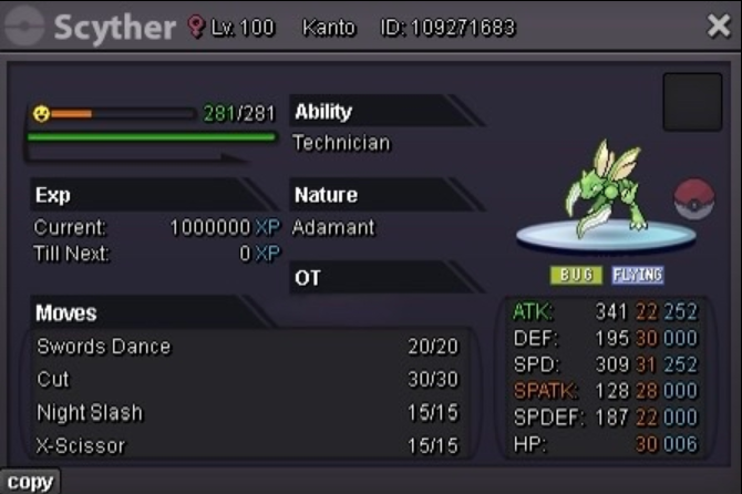 Yayozama started following [AUCTION] Epic 22+ 31 Spd Adamant Technician Scyther