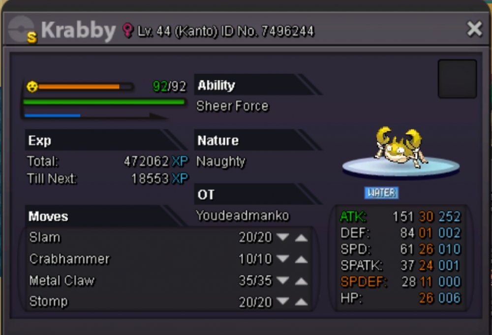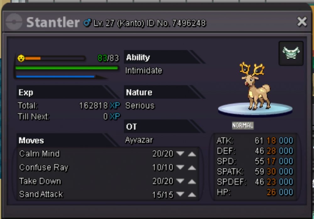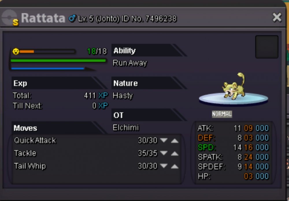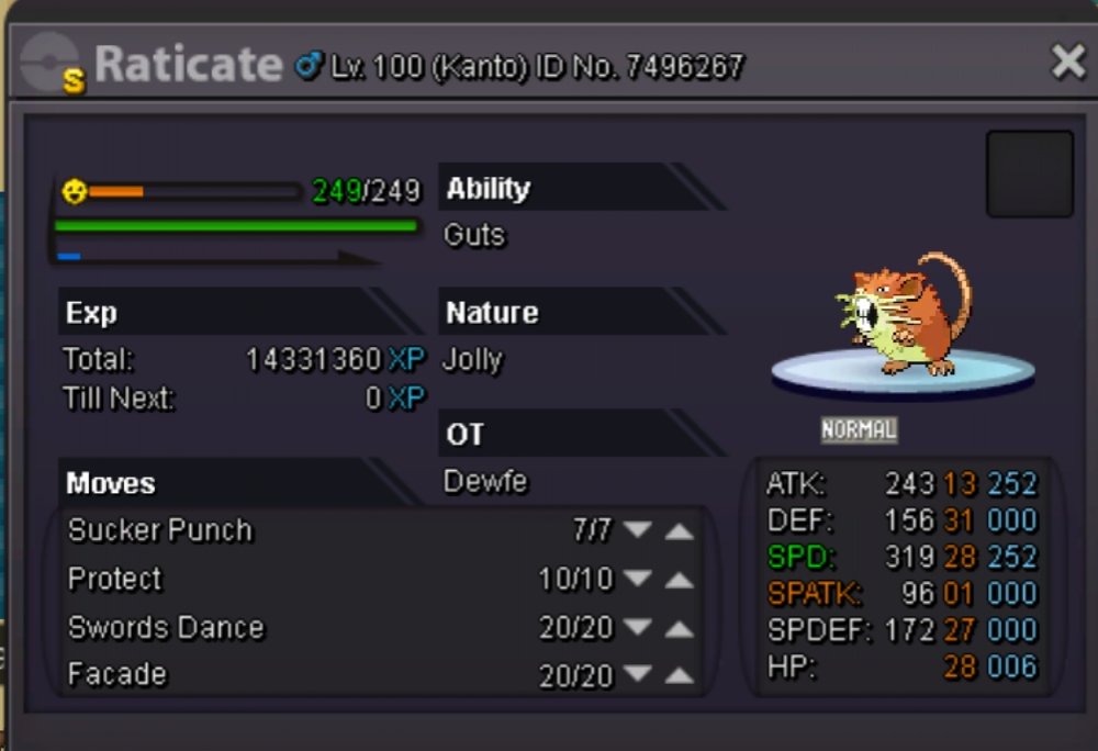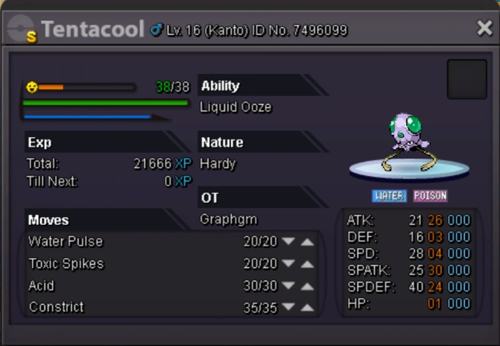 Before we start, a big thanks to Eaty and the other staff members who helped with the recent update of PRO, there is not much more to make this game awesome. Hello Here are my different suggestions that I think are important on PRO. (Can be update). Need to be coded / fixed. ( = Thanks Eaty) Move : • Volt Switch / U-Turn. (Very important to change the order of the choice of switch). • Substitute. (Not really need to explain why it should be added, an essential attack in Pokemon strategy). • Trick Room: (Same as Sub'). • Baton Pass (Hard to explain the bug..) • Solarbeam (need to add a text which gives the name of the attack). • Healing Wish • Move Tutor: Trick - Whrilpool - Stomping Tantrum.. Ability : • Imposter (Everybody like Ditto Scarf'). • Speed Boost (Add the text that gives the information that the pokemon's speed is increasing at each turn with Speed Boost). • Analytic (Why not). Other but Important : • Weather Icon in Battle : With all these players playing Rains - Sands or Suns, it is very important to set this icon bug for all the time to know if the climate and still on the battle or not, I would even suggest to add a text like on Showdown to know the number of turns. (Same for Screens for the text) Here for this list, if you have suggestions to complete it I listen to you. I know that the staff members know what should be fixed / coded but I think this list can be useful for them and for the players because it also explains why it is important for the pokemon strategy. Love.2 points