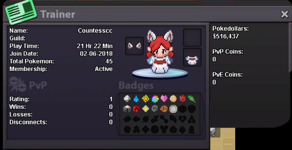 Why do you want to join Eternity?: I was told about it on Discord from the head of the guild, so I thought I'd give this a try. Real name / ingame name: CC / CountessCC How old are you?: 20 Ur country/ which language(s) do you speak?: Canada / English Discord name+tag / how often u r online there?: CC#2201 / I always have it open What is your goal on pro/are you interested in pvp/already pvping?: At the moment I want to complete the main quests (currently going through Johto) and after I finish all of those I want to do all sorts of multiplayer stuff, including PvP Screenshot of your trainercard:1 point