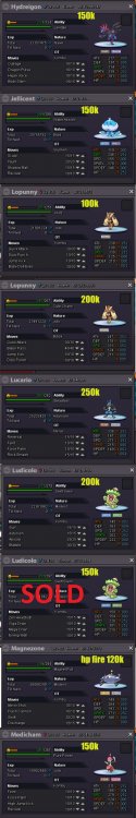 Welcome to my Shop! 1. All prices are insta. 2. Prices can be negotiated. 3. Best way to contact me is via Discord (Kombu#5205), but u can PM me in game too. 4. I accept CC as 300k but don't give the change. 5. I don't trade for other pokes. 6. If you have any questions, ask me here or on Discord. CONTACT OWNER: IGN: Kombu Discord: Kombu#5205 CONTACT: IGN: Kombu or Ciupa Discord: Kombu#5205 or Ciupa#09671 point