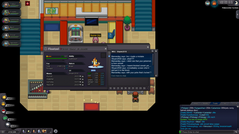 I'm playing on Silver server, me and Flametiger agreed that he would ev / lvl train my happiny for 90k. He didn't tell me he hadn't played Sinnoh yet thought so now it is stuck in his pc and he doesn't want to play Sinnoh yet. Here's a screenshot of the conversation and I dont have the screenshot of the Happiny becasue Flametiger claims that he can't find me on discord, tbh he's lying and also sending me a fake name lol. But the happiny is lvl 24, bold nature with Natural Cure. I think it has 30 Defense, low 20's spdef and mid 20's hp. The spatk is bad i think under 10 and speed is 21 iirc. Thanks for the assistance :)1 point