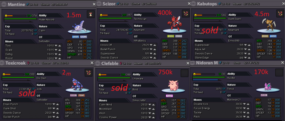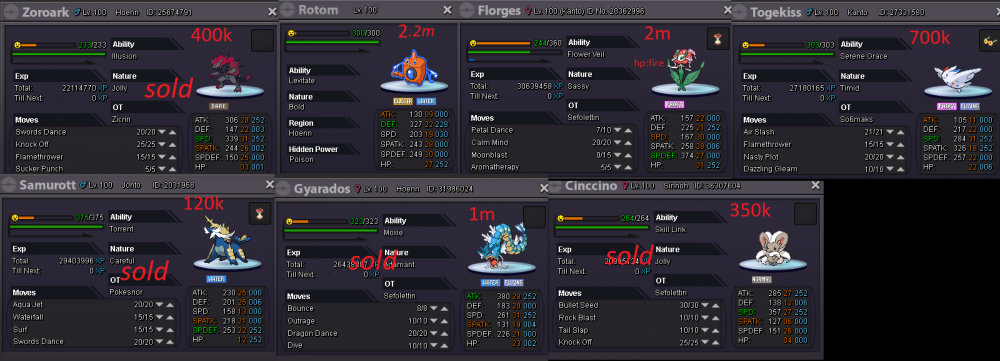 Hello there, This thread is a continuation of the first thread that was written by Adam a year ago summarizing most of the moves/abilities that were not coded as well as other potential beneficial changes for the PVP : https://pokemonrevolution.net/forum/topic/100844-url We were happy to see some of the suggestions were taken in account by Eaty and the whole staff team and eventually coded/fixed. Here, i'm going to summarize again the maximum amount of moves, abilities, and PvP related stuff that still need to be coded/fixed for the PvP to be finally the one we've always dreamt of ! I'll also take in account those mentionned in last year's thread that weren't possible to code/fix at the time or not coded in italic. So here are my suggestions, those i think are important for this game's PVP (can be updated). Need to be coded / fixed Moves : Substitute (as previously said one of the most essential move in Pokemon strategy) Healing Wish U-turn / Volt Switch : We need to be able to choose our switch after the attack triggered U-turn / Volt Switch : We should be able to use Volt Switch / U-turn even when all our other pokemons are dead, whilst we can't Fly and Bounce : Bugged, they completly ignore moves like Protect, Destiny Bond and simply go through like it's nothing Softboiled, Roost, Recover, Slack Off : Doesn't let you use the move and heal yourself when the opponent switches to a Pokemon who dies to Stealth Rock or any entry hazard on the switch [spoiler=Video Evidence] Taunt : When a Pokemon is under the Taunt effect, he shouldn't be able to use his moves that aren't attacks even if it writes "But it failed", he should be forced to use only Attacking moves instead Stomping Tantrum : The move should get boosted by x2 BP when the user's last move failed as it works in the official games [spoiler=Video Evidence] Recycle Abilities : Imposter (Ditto's Signature ability, very useful pokemon in PVP) Gluttony (can be quite useful in the future alongside gen 7 berries) Illusion (Zoroark's Signature ability, makes the mon completly useless without it) Flash Fire : Should boost Fire moves BP by x1.5 when hit by a fire move instead of only absorbing the attack Other important changes/upgrades : A forfeit option/button (this is more like a suggestion, doesn't really have to do with anything coded wrongly) Having the information about the number of turns left of Rain/Sun/Sand/Screens on the screen like on Showdown Having the possibility to get at least 2 versions of the same Legendary Pokemon for a different set/nature (again, this is only a suggestion that, in my opinion, could really benefit the versatility of the PVP, but it doesn't have anything to do with coding) Items : Red Card / Eject Button : intersting items to have in PvP, can bring more diversity and creative sets Figy, Iapapa, and the rest of the berries that aren't ingame : very useful berries in PvP, brings again more diversity to the sets and can really help some Pokemons (at least for the 2 first ones) Air Balloon : Pops when hit by a fire move on Heatran, whilst it shouldn't, and probably the same for other 'absorbing' Abilities So these are my suggestions for the current PvP system in PRO, i know the Staff Team and its developers are already working on that matter but i thought it would be a good idea to summarize everything again after a year in order to help them and to possibily get new PvP stuff coded just like last year's thread helped in that process. I also know a big PvP update is currently being worked on, but i feel like some of these bugs/moves/abilites/changes could or should be fixed and added beforehand and as fast as possible, considering the importance of many of these previous points in the current PvP system. If anyone feels i've forgotten something or has anything to say about the thread, feel free to comment ! Yours truly.9 points