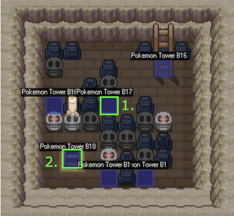 Hi there and welcome to the Pokemon Tower Underground Guide! This guide will help you navigate the underground's maze. Along with that, it'll also inform you on the pokemon you can obtain in the area. Please remember that you require active membership to access the lowest level of the Underground. Region: Kanto City: Lavender Town Access Point: Pokemon Tower 1F [spoiler=Lavender Tower Underground] The Underground can be quite tricky. There are 29 Floors before the Underground. The images below will teach you which teleport pad or ladder to take for each floor. [spoiler=B1-B8] B1: Take the ladder at the lower right corner. [spoiler=B1] B2: Take the ladder at the top right corner. [spoiler=B2] B3: Take the teleporter directly below the ladder. Afterwards, take the teleporter at the lower left corner. Finally, take the ladder at the lower right corner. [spoiler=B3] B4: Take the ladder in the middle. [spoiler=B4] B5: Take the ladder at the lower left corner. [spoiler=B5] B6: Take the teleporter in the middle. [spoiler=B6] B7: Take the ladder at the top right corner. [spoiler=B7] B8: Take the ladder at the top left corner. [spoiler=B8] [spoiler=B9-B16] B9: Take the ladder at the lower left corner. [spoiler=B9] B10: Take the ladder at the top right corner. Once at B9, take the teleporter closer to the right side of the room. Once back at B10, take the ladder at the lower right corner. [spoiler=B10] B11: Take the teleporter at the top left corner. [spoiler=B11] B12: Take the teleporter at the top right corner. [spoiler=B12] B13: Take the only ladder in the room. [spoiler=B13] B14: Take the only descending ladder in the room. [spoiler=B14] B15: Take the ladder at the lower right corner. [spoiler=B15] B16: Take the ladder at the top right corner. [spoiler=B16] [spoiler=B17-B29] B17: Take the teleporter nearest to the ladder. Afterwards, take the ladder at the lower left corner. [spoiler=B17] B18: Take the ladder at the lower right corner. [spoiler=B18] B19: Take the teleporter closer to the left side of the room. [spoiler=B19] B20: Take the teleporter closer to the right side of the room. [spoiler=B20] B21: Take the ladder at the top right corner. [spoiler=B21] B23: Take the ladder at the lower left corner. [spoiler=B23] B22: Take the teleporter at the top right corner. [spoiler=B22] B24: Take the teleporter at the lower left corner. [spoiler=B24] B29: Take the ladder closer to the right of the room. [spoiler=B29] Location: Pokemon Tower B12 Cost: 12,000 Pokedollars [spoiler=Hypnosis Tutor] Item: Dusk Stone Cooldown: Does not respawn Location: Pokemon Tower B25 Directions: [spoiler=Dusk Stone Directions] B24: Take the ladder at the lower right corner. [spoiler=Duskstone B24] B25: Interact with the front of the grave west of the ladder in the center. [spoiler=Dusk Stone B25] The easiest way to find pokemon that spawn in an area is by using the Reborn Bot. You may access the Reborn Bot in the PRO Official Discord or you may invite it to your own server. Nevertheless, here is the list of pokemon that you may obtain in the Pokemon Tower Basement and Underground. The Basement levels does not require active membership, while the Underground does. Updated as of August 16th, 2018 Basement: [spoiler=Pokemon Tower Basement Spawns] Pokemon Tower B1 #Pokemon Area Daytime Rarity MS Level Item Gastly Land M/D/N Tier 5 No 10-14 - Rattata Land M/D/N Tier 1 No 10-14 - Zubat Land M/D/N Tier 1 No 10-14 - Underground: [spoiler=Pokemon Tower Underground Spawns] Pokemon Tower Underground #Pokemon Area Daytime Rarity MS Level Item Duskull Land N Tier 6 Yes 12-16 Reaper Cloth Gastly Land M/D/N Tier 4 Yes 12-16 - Litwick Land M/D/N Tier 8 Yes 17-21 - Misdreavus Land M/D/N Tier 5 Yes 12-16 Spell Tag Rattata Land M/D/N Tier 1 Yes 12-16 - Shuppet Land M/D/N Tier 6 Yes 12-16 Spell Tag Spiritomb Land M/D/N Tier 8 Yes 12-16 - Zubat Land M/D/N Tier 2 Yes 12-16 -1 point