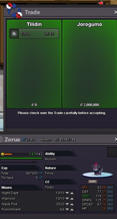 Hi, i'm offering my Pokedex Service for the Pokemon 001-479 excluding legendaries and mythical pokemons. I have rules: 1. Give me the Pokedex numbers of the pokemon you need beforehand on Discord. 2. If a pokemon is region locked you have to inform me first before accepting trade. 3. Keep 5 slots in ur party empty before starting the trade. 4. Payment is done each trade, for example 10k per trade if the price is 2k each. 5. As this is a pokedex service you have to return the pokemon after each trade. The price is: 3k each for -30 Pokemon. 2k each for +30 Pokemon. My Discord is Great-Lucky#7602. I speak French or English.3 points