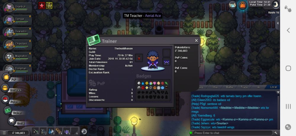 Adapt your moderation : a 'W' in trade chat is not a fault or an obligation to warn a player, someone speaking another language in another chat could have made a fail of tab, don't warn him. These are some kind of examples which could be better handled. It's not making an exception, it's adapting moderation to real cases. One player could have fail, 2 players in less than 5 minutes is probably an infraction. Judge everyone differently : If you warn and mute someone , please, only warn the second player. The 2nd player can just connect, or just switch chat, or re-open the chatbox ( i kept it closed when i farm ) and has never seen the warn. Adapt your sanctions : When someone is muted for swearing, stop over-cumulating the sanction until banning him. No provocation on mod, adapt duration and don't sanction on the next duration stage. If weeks between sanctions , maybe reset or just pass on previous duration stage. Be more precise : When you moderate, precise more the message of the sanction. Some players are sanctionned with one word as reason and really don't understand why they are muted. You forced them to make an appeal. Find a way when players dc/crash and don't have the name of the buyer/seller. We could only find the buyer/seller in Trade chat as they keep this chat open. So asking ' Hey the man who sells Charizard, pm me ' is the best way to find again the guy. They surely don't have All Chat or Another chat open at this moment. Don't moderate this case until a proper way is find. There was a specific case : Lot of french players got sanctionned from the French channel because of their behavior. We decided to create a private channel and invited all the guys who wanted to speak freely. We couldn't speak freely because : Couldn't force a password (desactivated) The mod (Epiales) was aware of the channel because some players enforced the rules and advertised the channel on French channel => Give again the option of password for the private channels plz Over the 3 years of PRO, lot of players left PRO because of the extrem application of the rules and the no-adaptation to each case and each people. Professionalism is different of being strict. Thanks for having read my post.1 point