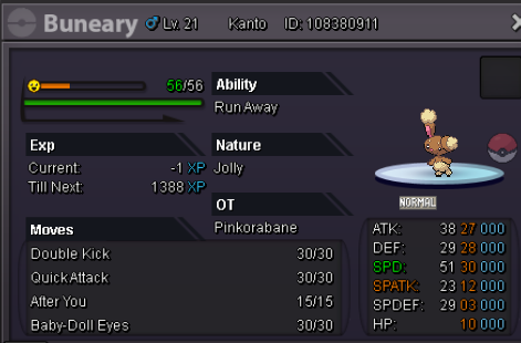 IF A TRADE MODERATOR HAVE TO FORCE A TRADE , ALL POKEMON WAS ON SHOPORABANE ACCOUNT Total Pokemon for sale : 313 Total Pokemon sold : 319 What you need to know First of all (Pokemon Lv 100 shop part) I capture, I do the Ev's and I level these to level 100. Then I sell them. Thanks to not complaining about some mooveset not done. Pokemon Shop Rules - Cross Server only if u come on SILVER. - Fake offers --> Instantly Reported. - No auction here. - First buyer who confirms the purchase will have the pokemon, even if someone intends to buy it more expensive. - Purchase can mixing Item and money, do the difference. - Only accept items on list Payment available - Capsule coin : 450.000$ each - Nature Rerol Ticket :325.000$ each - Iv's Rerol Ticket : 650.000$ each - Pokedollars - Rare candy : 6.000$ each - PP Up : 2.000$ each - PP Max : 6.000$ each Contact me here My information ingame Step 1 - PM this account ingame Step 2 - Join my storage account in Vermilion City Step 3 - Let's Trade Pokemon Shop Last Pokemon Added Pokemon Lv.100 Trickroom AREA Untrained Trade Complete(238)1 point