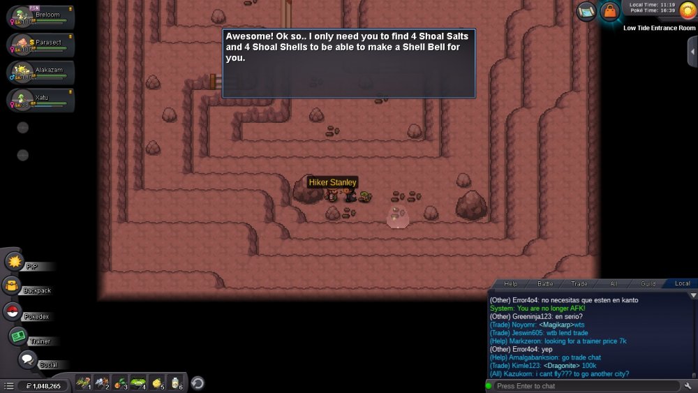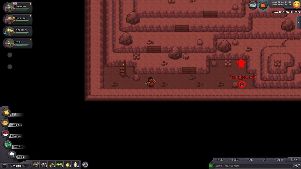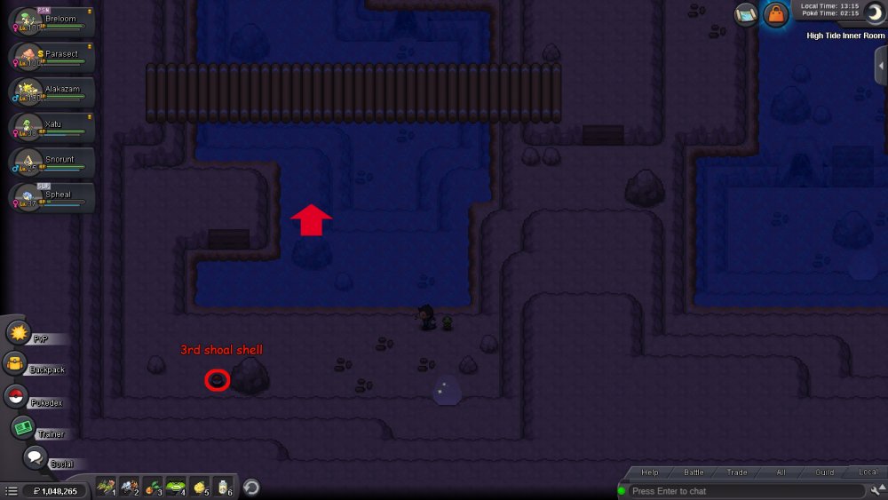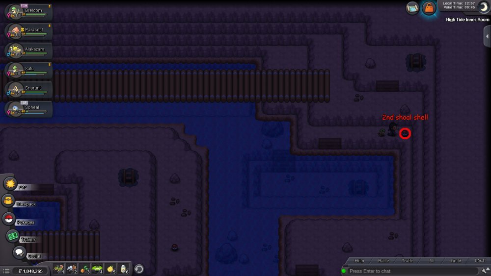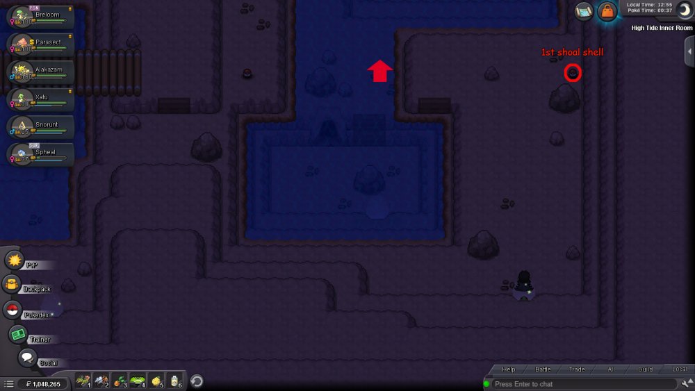 Shell Bell is an item to be held by a pokemon. The holder regains a little HP every time it inflicts damage on others, the HP regained is equal to 1/8 of the damaged dealt. REQUIREMENTS: Pokemon that can surf or surf mount PROCEDURES: [spoiler=Route]Route 125 [spoiler=Talk to the Shell Bell maker]Hiker Stanley [spoiler=The 1st Shoal Salt]From the entrance Go directly to the entrance at the middle (and oh BTW you can only obtain shoal salts during low tide and that is from 03:00-8:59 and 15:00-20:59 poke time) [spoiler= The 1st shoal salt2]upon entering you will see a pokeball lying on the ground, that is the 1st shoal salt now go down to the ladder where the arrow is pointing for the 2nd salt. [spoiler=2nd Shoal Salt]Right after getting down from the ladder you will see the 2nd salt on your right side. The red arrow is pointing your way to the 3rd salt [spoiler=3rd Shoal Salt]Go up through the ladder go down to the ladder where the arrow is pointing to get the 3rd salt [spoiler=3rd shoal salt and finally your way to the last salt]to your right side is the 3rd salt [spoiler=4th Shoal Salt]now to get to the last remaining salt just enter the opening next to Sean We got all the salt but we cannot start cooking yet XD, we still need 4 more ingredients the 4 shoal shells take note we are only able to gather the shells during high tide and that is 09:00-14:59 and 21:00-02:59 poketime. now for the Shoal Shell [spoiler=1st shoal shell]from the entrance enter the right side opening the pokeball on your right side is the 1st shoal shell [spoiler=2nd shoal shell]just above the 1st shell is the 2nd shell [spoiler=way to 3rd and 4th shoal shell]go back to the entrance and enter the left side opening [spoiler=3rd and 4th shoal shell]the 3rd shoal shell is located on your leftand just right above it where the arrow is pointing is the 4th shell Now that you got all the necessary ingredients go back to Hiker Stanley and talk to him oh and one more thing1 point