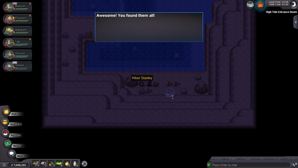 ⋯⋯⋯⋯⋯⋯⋯⋯⋯⋯⋯⋯⋯⋯⋯⋯⋯⋯⋯⋯⋯⋯⋯⋯⋯⋯⋯⋯⋯⋯⋯⋯⋯⋯⋯⋯⋯⋯⋯⋯⋯⋯⋯⋯⋯⋯⋯⋯⋯⋯⋯⋯⋯⋯⋯⋯⋯⋯ Welcome to the updated Legendary Event Moves Tutor Quest Guide! This quick walkthrough will cover everything you need to be able to teach the following legendaries certain moves, at the cost at $20,000 Pokedollars each move. Celebi: Nasty Plot Entei: Flare Blitz, Howl, Extreme Speed Raikou: Aura Sphere, Weather Ball, Extreme Speed Suicune: Air Slash, Extreme Speed Phione: Tail Glow REQUIREMENT: You’ll need to have caught one of the three legendary dogs in order to invoke this quest and have at least 200 Hours of playtime to finish it. If you haven't caught a legendary dog already, look at the Legendary Megathread for more information. Note: Scientist Rey, which was previously located at the Bell Tower Rooftop, has been moved to Bell Tower Floor 10 due to the addition of the Ho-Oh miniboss. Therefore, the images including Scientist Rey may slightly differ due to the location difference, but the dialogue and quest is the same regardless. ⋯⋯⋯⋯⋯⋯⋯⋯⋯⋯⋯⋯⋯⋯⋯⋯⋯⋯⋯⋯⋯⋯⋯⋯⋯⋯⋯⋯⋯ To start the quest, you will need to visit the Guardian's area where you caught your respective dog at. If, upon entry of the cave, you do not receive the dialogue to start the quest, try again with your legendary dog in the first slot of your party. Afterward, head to Bell Tower Floor 10 and talk to Scientist Rey. He claims that thieves have stolen the bell pieces and asks that you retrieve them. The only hint he gives you is to ask around in Ecruteak City for more information on where the thieves have gone. With that information, go to Ecruteak City and talk to an Old Man, who directs you to the Miltank Farm. At the Miltank Farm, you'll need to battle Thief Dorge. He has a Granbull at Level 120. Upon defeating him, he tells you to go after his brother Jorge, who went towards Route 29. Then, go to Cherrygrove City and head to the small island on the left to battle Thief Jorge. He has a Furfrou at Level 100. Upon defeating him, he tells you to go after his brother Gorje, who went towards Route 46. Afterward, go to Route 45 and battle Swimmer Thief Gorje. He has a Stoutland at Level 100. Upon defeating him, he tells you to go after his brother Gregorius, who went towards Violet City. Then, head to Violet City and battle Thief Gregorius. He has a Arcanine at Level 100. Upon defeating him, he tells you to go after Georgina, who was caught by the Goldenrod Police. Head to the Goldenrod Jail. Now, you'll need to fight Thief Georgiana at the Goldenrod Police Station. She has a Mightyena at Level 100. Upon defeating her, she tells you that George has been transported to the Kanto Jail. Then, go to Pewter City Jail and speak with Warden Noisia. Noisia will give you special permission to challenge George. Make sure you're ready to defeat George! If you get defeated, George has a 1-day cooldown, and if you defeat him, he'll have a normal 12-day boss cooldown. Remember, you need to have at least 200 hours of playtime in order to challenge George. You can find all Infos about George including his Line up and Moveset here. To get to George after you've been given permission, click on the gate highlighted below, and the game should push you inside his cell. Once you've defeated all the thieves successfully, go back to Scientist Rey on the Bell Tower Floor 10. As he doesn't know how to properly repay you, he refers you to Researcher Alan, who may have something 'useful' for us; for us, that means that we can learn event moves for our legendaries now! After finishing the quest steps above, head to Ruins Research Center and talk to Researcher Alan. He now will teach any legendary their event gained techniques! Good luck!1 point