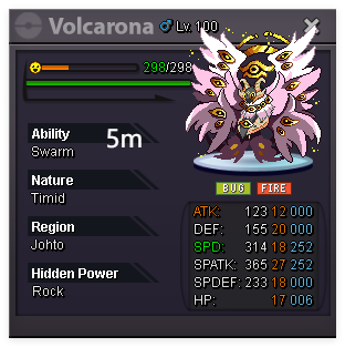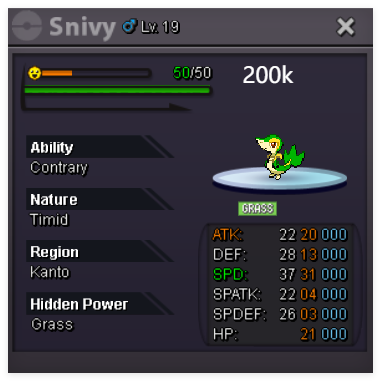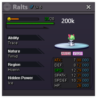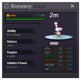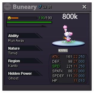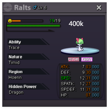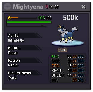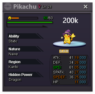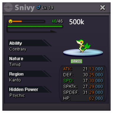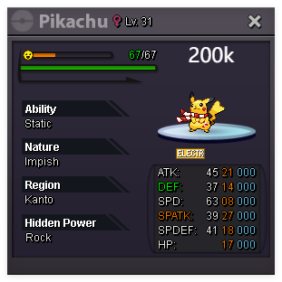 Hello PRO staff Having to link a pokemon in chat to see its hidden power is literally tiring. It is an important information that should be quickly displayable and considering how many pokemon a player can have, the linking can be tedious and time-consuming. (examples: tangela, magnemite) The card opened by clicking on a linked pokemon has 4 couple of lines, for ability, nature, region, hidden power. The space required for these 4 couple of lines is exactly the same used for the 3 couple of lines (ability, nature, OT) displayed in the card that opens clicking on an owned pokemon, without linking required. I believe -this is my suggestion- the hidden power should be displayed on the cards without requiring to link the pokemon, fitting this information between nature and OT, there is just enough space to keep it clear.2 points