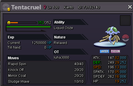 Welcome in my Shop ! Shop rules: All trade rules must be followed ! Prices can be negotiable, message me on the thread, via my discord or ingame. I try to give hints as to how you can use the pokemon in PvP, do not hesitate to ask questions Payment methods: Pokedollars. Coin Capsule. (520k) IV Re-roll Ticket. (750k) Nat Re-roll Ticket. (375k) PvP items (on demand) Rare candy. (7k) If any questions you can post or message me in game. Venusaur : 125k Tips : For mega venusaur set with Sludge Bomb, Giga Drain, Earth power, leech seed Infernape : 200k Tips : Stealth rock suicide lead Use with focus sash. Set rocks and/or use endeavor + mach punch. Or prevent rocks with taunt. Volcarona (Hp ice) : 300k Magnezone (Hp ground) : 300k Lilligant (hp fire) : 400k Slaking : 400k Tips : 451 atk comes as an absolute nuke. Associated to his decent speed tier, it can punch easily punch a hole in your opponent defensive backbone. Its wide pool of coverage moves give you the tools to hit virtually anything for supereffective, assuming your predict well. A choice band is ideal for it. Annihilape : 500k Tips : This is a more offensive version of the feared annihilape with adamant nature and its 358 atk, it becomes an immediate threat. Lucario : 600k Tips : The classical stallbreaker. Swords dance, hit them with a stab meteor mash or close combat and watch them cry. Or use a powerful extreme speed for faster foes. Its typing and huge offensive presence will help punching holes in your opponent defensive core. Darmanitan : 500k Tips : Darmanitan is a staple in most sun teams where is benefits from a stab sun boosted flare blitz (+ sheer force boost) capable of annihilating the defensive backbone of your opponent. Use it with a scarf as a pivot thanks to u-turn and threaten usual sun team checks with eq and superpower. Cloyster : 400k Volcarona : 500k Tips : Life orb set with Giga drain, Bug buzz and flamethrower/fire blast 31 speed allows you to drop powerful atks without having to quiver dance everytime, 360 spatk unboosted is nothing to laugh at Altaria : 500k Tips : Mega altaria set With its impressive bulk and great typing, mega altaria can provide a nice offensive pressure, threatening most of the meta Earthquake is guaranteed 2hko on calm heatran (even with modest nature and 04 atk !) Flamethrower and hypervoice threaten a large portion of the meta Heracross : 500k Tips : Use as fast mega. Trailblaze lets you setup speed. Close combat as powerful stab and rock blast/pin missile to take full benefits from mega ability skill link. Ideal to lead vs sash leads like excadrill (trailblaze into cc) or breloom (pin missile) or to pressure zapdos (rock blast) ________________________________________________________________________________________________________________________________________________________________________________________ Trick Room Pokemons ! _________________________________________________________________________________________________________________________________________________________________________________________ A-B-C D-E-F G-H-I J-K-L M-N-O P-Q-R-S T-U-V W-X-Y-Z (empty... for now) Regional counterparts (Hisui, Alola, Paldea) Rare counterparts Many other pokemons will be added very soon. Contacts : In game : Dorade Discord : .dorade1 point