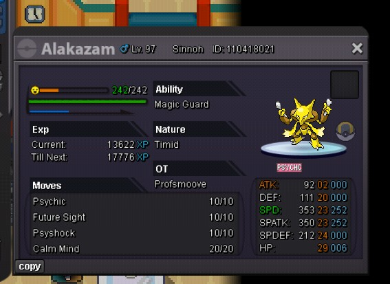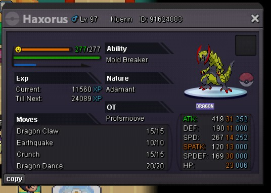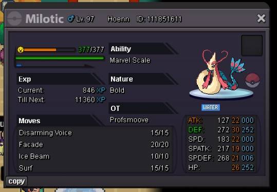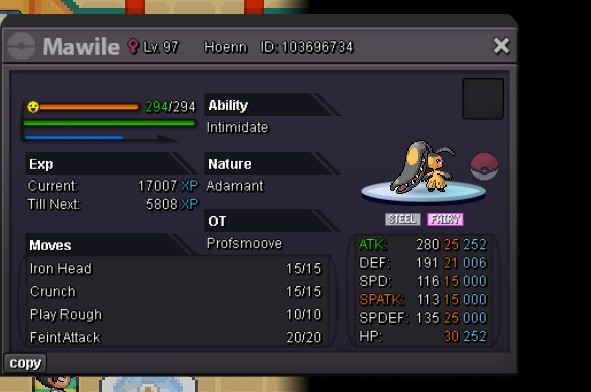 Auction Details: Start Price: 10m End Point: 72 hours (after start price is met) Insta Price: 25m Minimum Raise: 500k Accepted Payments: Pokedollars, Coin Capsules (x1 Coin Capsule = 400k), IV Reroll Tickets (x1 IV Reroll Ticket = 500k) Important Reminders: This is a Cross Server auction. You may bid from any server, and I will transfer to your preferred server upon winning. If you intend to purchase with an alt account, specify the account alongside your bid. If a bid is received in the final 15 minutes of the auction, the end point will be delayed by 15 minutes from that bid, and will be delayed by 15 minutes for each new bid thereafter, until the current offer has been held for a full 15 minutes. Happy Bidding!4 points