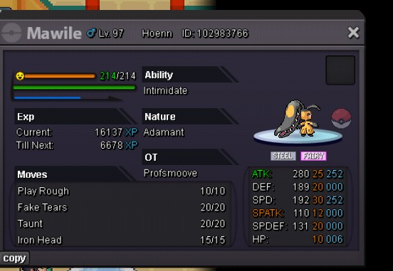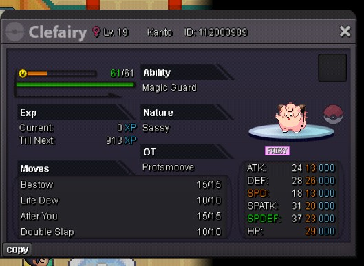 Hi there, Welcome to my shop! Thank you for dropping by. I’ll be updating the shop as much as I can so expect more mons to be added in the future. Current Update - Pokemon Added (3-28-26) Contacts IGN : Profsmoove Discord : professorsmoove Shop Rules Fake offers will be reported Some Prices can be negotiable I have the right to refuse/decline offers if necessary This is a Silver Server Pokemon Shop so if you are on Gold server, you’re welcome to shop here but do note that you will need to transfer over to Silver server to make your purchases Once an offer has been set, it cannot be retracted Please do note that I might take a little long to conduct these sales / negotiations since I’m on android at the moment so please be mindful Payment Methods Pokedollars Coin Capsule (CCs) - 500k IV Reroll Tickets - 700k Nature Reroll Tickets - 350k Rare Candies - 6k Trained Pokémon 350k 1m 400k 600k 550k 1.2m 600k 400k 300k 500k 700k 500k 450k 200k 250k 700k Untrained Pokémon 200k 250k 800k 300k 150k 350k 450k 275k 250k 150k3 points