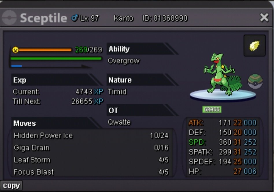 Auction Details: Start Price: 500k End Point: 48 hours (after start price is met) Insta Price: N/A Minimum Raise: 200k Accepted Payments: Pokedollars/cc 500k each Important Reminders: If you intend to purchase with an alt account, specify the account alongside your bid. If a bid is received in the final 15 minutes of the auction, the end point will be delayed by 15 minutes from that bid, and will be delayed by 15 minutes for each new bid thereafter, until the current offer has been held for a full 15 minutes.1 point