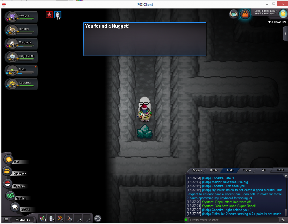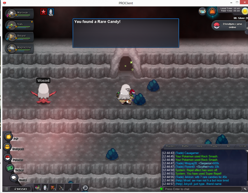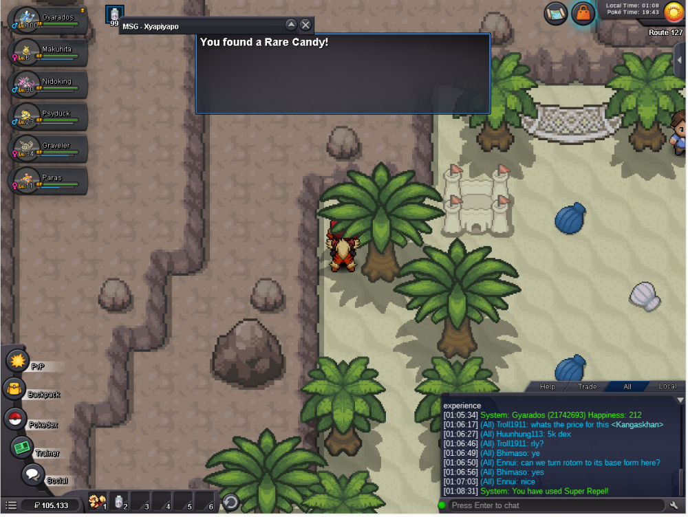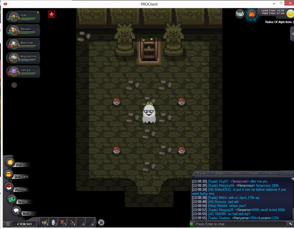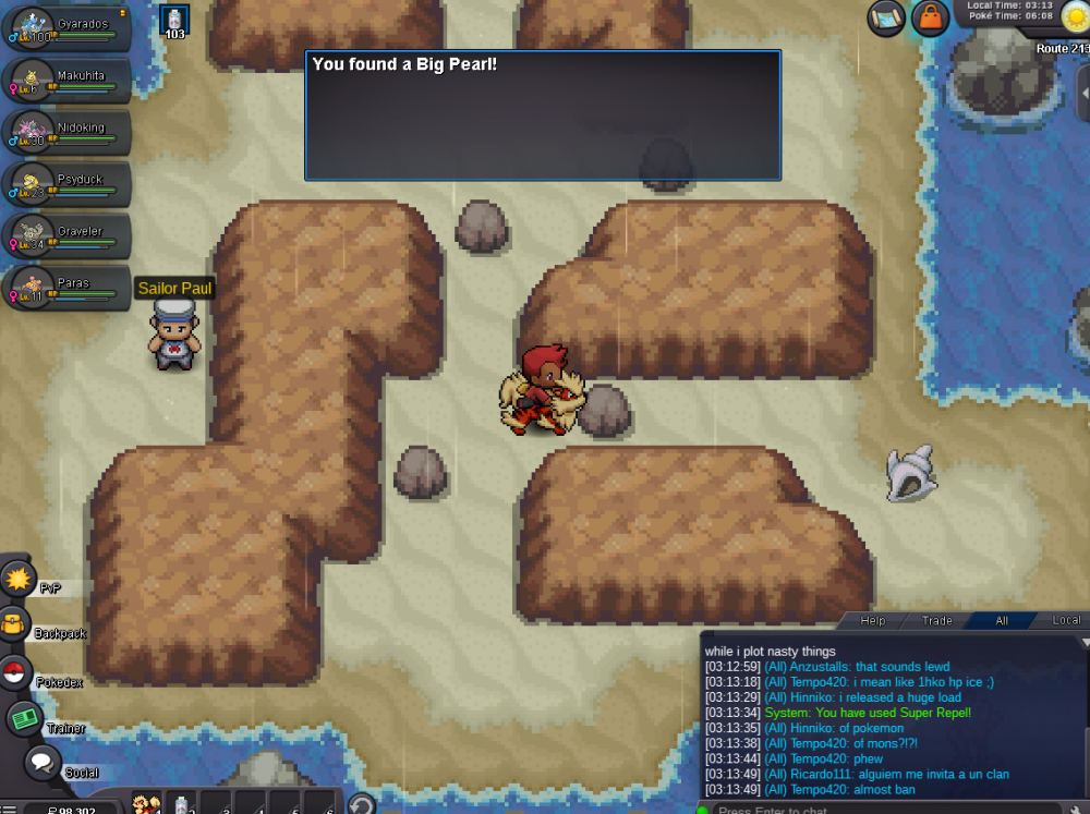 We have listed ALL of the locations of monetary items in PRO. We've calculated the money gain and taken screenshots and written down the location of all these items: Pearl, Big Pearl, Nugget, Stardust, Star Piece, Big Nugget, Big Mushroom, Small Mushroom. As an extra, I am also listing Rare Candy, since they seem to be of everyone's interest and they're insta sellable on the PROMarket. I've gone through the entire PRO Wiki and made an entire list of the places where the monetary items are. However, there's still a lot of items missing, missing info, and screenshots, and the previous guides for monetary items and hidden items are outdated and the pictures do not even work anymore. I've listed the places I've already been to and taken a screenshot of, but there's still a LOT to find out. I'd ask you all if you want to collaborate to come and help out to find the missing spots and the remaining screenshots for all the info we've gathered. I'm going to copy paste the list here and link the zip file with all my work for now. We are also missing the time frame in which these items respawn, as we are not 100% sure the Wiki info is correct since it's mostly outdated (some of these spots even changed). The guide is 99% done and can thus be considered complete, but it will be edited if any new findings appear or if anyone takes better screenshots of some areas. For now, pictures will be uploaded as attachments in the bottom of this post, and will be fixed and uploaded properly in the post itself. There are way too many pictures to be posted, so it would completely break the post order. We're constantly going to use the Hidden and Monetary Item Location Guide throughout this process: https://pokemonrevolution.net/forum/topic/132722-url ! Approximate Money Gain if you pick em all up. Big Nugget : 20k (x2 in total) = 40k Nugget: 5k (x10 in total) = 50k Pearl: 3k (x15 in total)= 45k Big Pearl: 9k (x6 in total) = 54k Stardust: 1.5k (x5 in total) = 7.5k Star Piece: 6k (x4 in total) = 24k Tiny Shroom: 1.5k (x1 in total) = 1.5k Total FIXED possible gain from grabbing everything: 369k Kanto Items Viridian City Rare Candy: Bottom side after the bridge. - 7 days. Viridian Forest Rare Candy; Behind the tree next to the maze. - 14 days. Mt Moon B1F Star Piece: South from the team rocket guy down the first ladder. - 14 days. Route 3 Stardust: In the first dig spots at the beggining of the route, it's in the northwestern rock. - doesn't respawn. Route 12 Rare Candy: South from the Camper Justin pokeball, 2 tiles down from it. - 14 days. Route 16 Rare Candy (Bicycle needed): Pokeball. - 14 days. Route 17 Rare Candy: East of Cue Ball Corey, between the rightmost pillars. - doesn't respawn. Seafoam B1F Pearl: Southeast from westmost B2F Ladder, tall stalagmite. Credits to Waleed1301 for the picture! - doesn't respawn. Seafoam B3F Pearl: East of the westmost tall stalagmite from the B2F ladder. - doesn't respawn. Seafoam B4F Nugget: Centermost stalagmite of the island reachable from the second eastmost B3F ladder. - doesn't respawn. Note: the location is different for each player. Route 27 Rare Candy: Left of the tree with an axe on it, near Johto Falls. - doesn't respawn. Kanto Extra Items Cerulean Cave 1F Nugget: Pokeball. - respawns, 14 days Cerulean Cave B1F Nugget: Rock smash some rocks and you will find it. Credit to Ashes55! Doesn't respawn. Ceru Cave 1F Rare Candy: Just when you enter, between the water and the rocks above the staircase in the entrance. - 7 days Love Island Diamond Domain Cave Rare Candy: Pokeball. - Doesn't respawn (for some reason) Island One Treasure Beach Starpiece: Next to the old man, under umbrella. - Doesn't respawn. Island One Kindle Road: In the thin line to the left of the saunas, hidden Nugget at the bottom of the sand - Doesn't respawn. Island Five Stardust: Rock to the left of the bridge, on the beach. - Doesn't respawn. Island Five Meadow Pearl: In the beach, the leftmost shell. Doesn't respawn. Island Five Chrono Chross Nugget: Behind a tree. - Doesn't respawn. Water Path Pearl: In the middle of the route, in the sand castle, - Doesn't respawn. Island Six Big Nugget: It's in the cave you have to go through while doing the Meowth Quest. Pokeball. - Doesn't respawn. Vulcan Island Shore Rare Candy: Enter the Vulcan Path, go to the bottom left, climb up the stairs, exit to the south. Next to the boss. - Can't check if it respawns. Vulcan Forest Rare Candies: Next to the northern exit. - Same as above. Johto Items Violet City Rare Candy: Behind the gym sign. - doesn't respawn Route 35 Nugget: Surfing to the left, below the berry tree patch. - doesn't respawn Burned Tower Floor 2 Nugget: In the top left center rocks. - doesn't respawn Bell Towe Rare Candy: In the last floor before Ho-Oh, behind the pillar. - doesn't respawn. Mt Mortar B1F Rare Candy: North East Corner Pokeball. - doesn't respawn. Forest Pit Rare Candy: small rock west and north from Halley. - doesn't respawn. Route 39 Nugget: To the lampost next of Sentret. - doesn't respawn. Olivine City Rare Candy: In a rock in front of the Lighthouse. - doesn't respawn Olivine City Pearl: In the rightmost tile in the horizontal fence to the southeast of the gym. - doesn't respawn Johto Extra Items Route 49 Rare Candy: In the Southmost Island. - doesn't respawn. Mt Silver 2F Rare Candy: In the central rock in the northern exit. - doesn't respawn. Ruins of Alph Rare Candy: In the interior south west corner. - doesn't respawn. Ruins of Alph Rare Candy: In the northwest one. - doesn't respawn. Hoenn Items Oldale Town Rare Candy: Under the pokecenter. respawns every 7 days Meteor Falls B1FR Stardust: Below tess. doesn't respawn New Mauville Rare Candy: South of the stairs. respawns every 7 days Fortree City Tiny Mushroom: Below the bridge on the bottom right.- Doesn't respawn Shoal Cave High Tide Entrance Room Star Piece: To the left of the entrance, on a rock. Doesn't respawn Sootopolis City Rare Candy: Next to the Poke Mart. Requir