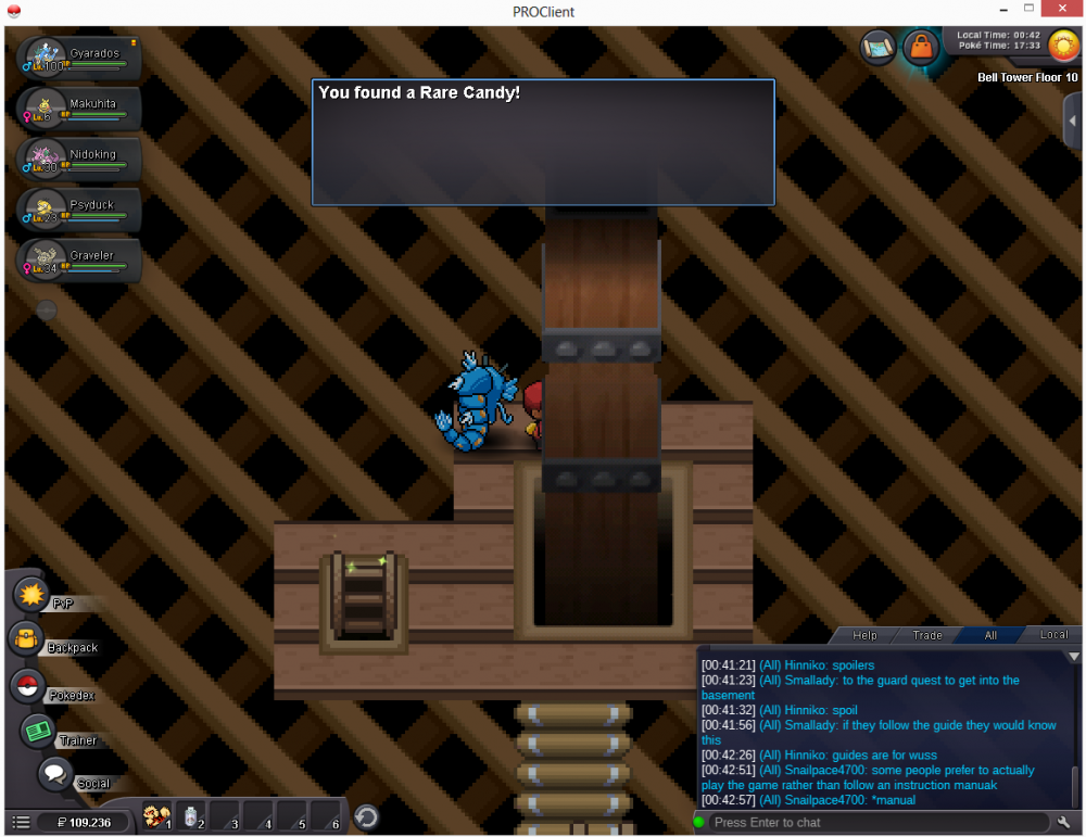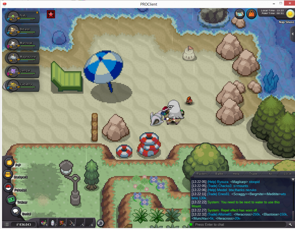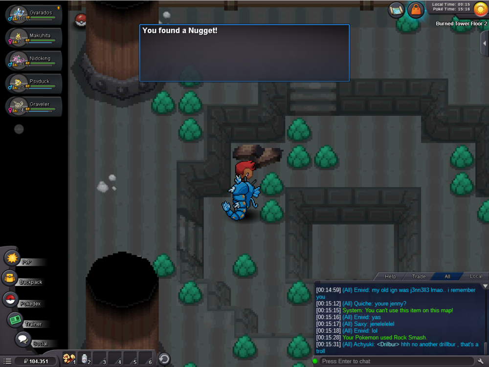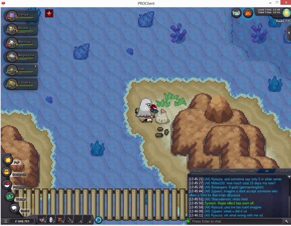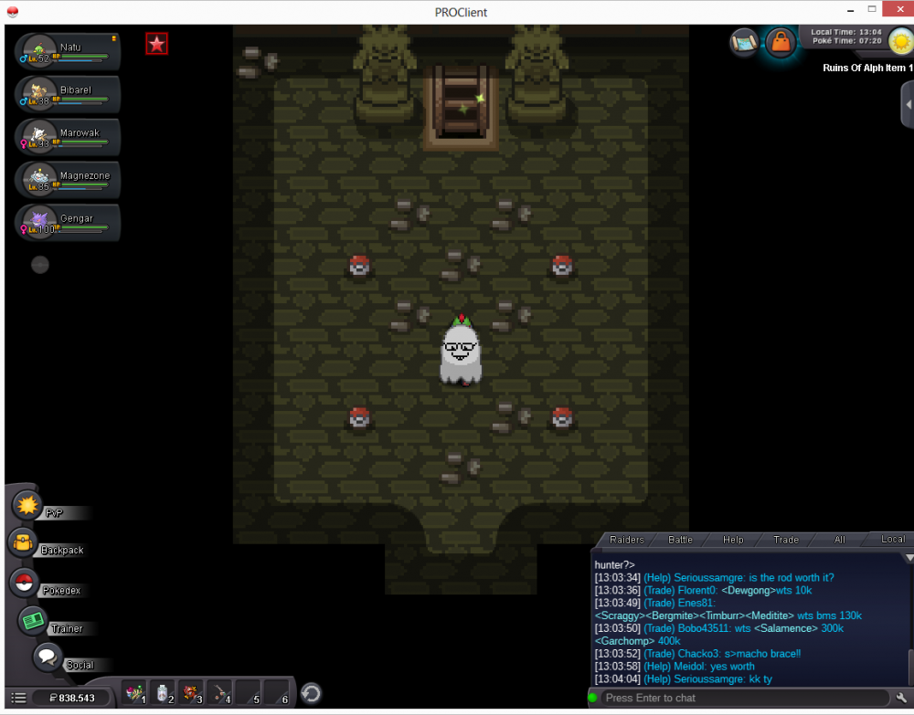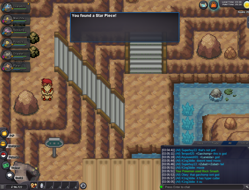 We have listed ALL of the locations of monetary items in PRO. We've calculated the money gain and taken screenshots and written down the location of all these items: Pearl, Big Pearl, Nugget, Stardust, Star Piece, Big Nugget, Big Mushroom, Small Mushroom. As an extra, I am also listing Rare Candy, since they seem to be of everyone's interest and they're insta sellable on the PROMarket. I've gone through the entire PRO Wiki and made an entire list of the places where the monetary items are. However, there's still a lot of items missing, missing info, and screenshots, and the previous guides for monetary items and hidden items are outdated and the pictures do not even work anymore. I've listed the places I've already been to and taken a screenshot of, but there's still a LOT to find out. I'd ask you all if you want to collaborate to come and help out to find the missing spots and the remaining screenshots for all the info we've gathered. I'm going to copy paste the list here and link the zip file with all my work for now. We are also missing the time frame in which these items respawn, as we are not 100% sure the Wiki info is correct since it's mostly outdated (some of these spots even changed). The guide is 99% done and can thus be considered complete, but it will be edited if any new findings appear or if anyone takes better screenshots of some areas. For now, pictures will be uploaded as attachments in the bottom of this post, and will be fixed and uploaded properly in the post itself. There are way too many pictures to be posted, so it would completely break the post order. We're constantly going to use the Hidden and Monetary Item Location Guide throughout this process: https://pokemonrevolution.net/forum/topic/132722-url ! Approximate Money Gain if you pick em all up. Big Nugget : 20k (x2 in total) = 40k Nugget: 5k (x10 in total) = 50k Pearl: 3k (x15 in total)= 45k Big Pearl: 9k (x6 in total) = 54k Stardust: 1.5k (x5 in total) = 7.5k Star Piece: 6k (x4 in total) = 24k Tiny Shroom: 1.5k (x1 in total) = 1.5k Total FIXED possible gain from grabbing everything: 369k Kanto Items Viridian City Rare Candy: Bottom side after the bridge. - 7 days. Viridian Forest Rare Candy; Behind the tree next to the maze. - 14 days. Mt Moon B1F Star Piece: South from the team rocket guy down the first ladder. - 14 days. Route 3 Stardust: In the first dig spots at the beggining of the route, it's in the northwestern rock. - doesn't respawn. Route 12 Rare Candy: South from the Camper Justin pokeball, 2 tiles down from it. - 14 days. Route 16 Rare Candy (Bicycle needed): Pokeball. - 14 days. Route 17 Rare Candy: East of Cue Ball Corey, between the rightmost pillars. - doesn't respawn. Seafoam B1F Pearl: Southeast from westmost B2F Ladder, tall stalagmite. Credits to Waleed1301 for the picture! - doesn't respawn. Seafoam B3F Pearl: East of the westmost tall stalagmite from the B2F ladder. - doesn't respawn. Seafoam B4F Nugget: Centermost stalagmite of the island reachable from the second eastmost B3F ladder. - doesn't respawn. Note: the location is different for each player. Route 27 Rare Candy: Left of the tree with an axe on it, near Johto Falls. - doesn't respawn. Kanto Extra Items Cerulean Cave 1F Nugget: Pokeball. - respawns, 14 days Cerulean Cave B1F Nugget: Rock smash some rocks and you will find it. Credit to Ashes55! Doesn't respawn. Ceru Cave 1F Rare Candy: Just when you enter, between the water and the rocks above the staircase in the entrance. - 7 days Love Island Diamond Domain Cave Rare Candy: Pokeball. - Doesn't respawn (for some reason) Island One Treasure Beach Starpiece: Next to the old man, under umbrella. - Doesn't respawn. Island One Kindle Road: In the thin line to the left of the saunas, hidden Nugget at the bottom of the sand - Doesn't respawn. Island Five Stardust: Rock to the left of the bridge, on the beach. - Doesn't respawn. Island Five Meadow Pearl: In the beach, the leftmost shell. Doesn't respawn. Island Five Chrono Chross Nugget: Behind a tree. - Doesn't respawn. Water Path Pearl: In the middle of the route, in the sand castle, - Doesn't respawn. Island Six Big Nugget: It's in the cave you have to go through while doing the Meowth Quest. Pokeball. - Doesn't respawn. Vulcan Island Shore Rare Candy: Enter the Vulcan Path, go to the bottom left, climb up the stairs, exit to the south. Next to the boss. - Can't check if it respawns. Vulcan Forest Rare Candies: Next to the northern exit. - Same as above. Johto Items Violet City Rare Candy: Behind the gym sign. - doesn't respawn Route 35 Nugget: Surfing to the left, below the berry tree patch. - doesn't respawn Burned Tower Floor 2 Nugget: In the top left center rocks. - doesn't respawn Bell Towe Rare Candy: In the last floor before Ho-Oh, behind the pillar. - doesn't respawn. Mt Mortar B1F Rare Candy: North East Corner Pokeball. - doesn't respawn. Forest Pit Rare Candy: small rock west and north from Halley. - doesn't respawn. Route 39 Nugget: To the lampost next of Sentret. - doesn't respawn. Olivine City Rare Candy: In a rock in front of the Lighthouse. - doesn't respawn Olivine City Pearl: In the rightmost tile in the horizontal fence to the southeast of the gym. - doesn't respawn Johto Extra Items Route 49 Rare Candy: In the Southmost Island. - doesn't respawn. Mt Silver 2F Rare Candy: In the central rock in the northern exit. - doesn't respawn. Ruins of Alph Rare Candy: In the interior south west corner. - doesn't respawn. Ruins of Alph Rare Candy: In the northwest one. - doesn't respawn. Hoenn Items Oldale Town Rare Candy: Under the pokecenter. respawns every 7 days Meteor Falls B1FR Stardust: Below tess. doesn't respawn New Mauville Rare Candy: South of the stairs. respawns every 7 days Fortree City Tiny Mushroom: Below the bridge on the bottom right.- Doesn't respawn Shoal Cave High Tide Entrance Room Star Piece: To the left of the entrance, on a rock. Doesn't respawn Sootopolis City Rare Candy: Next to the Poke Mart. Requir