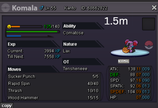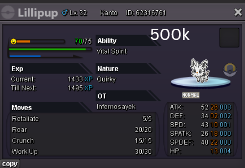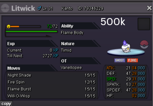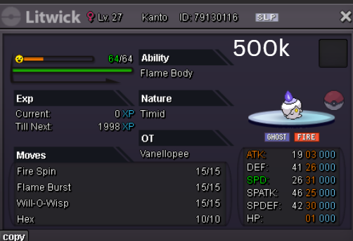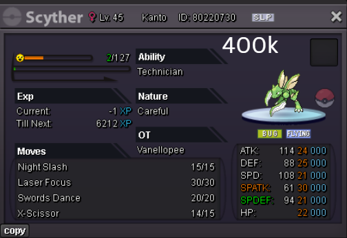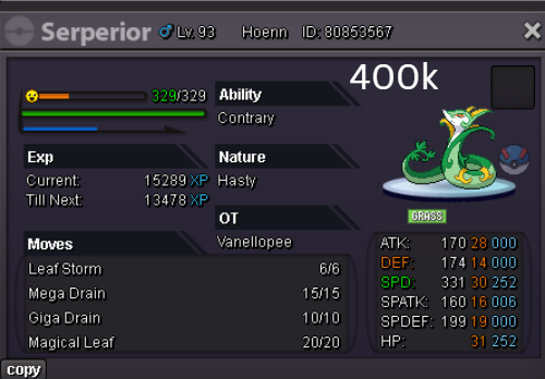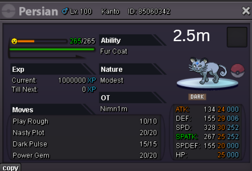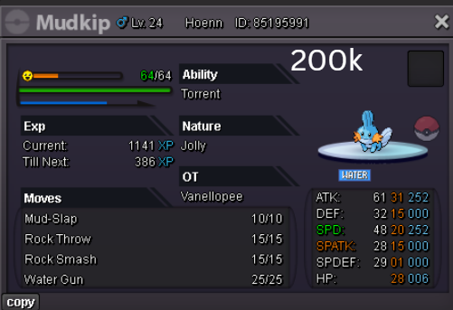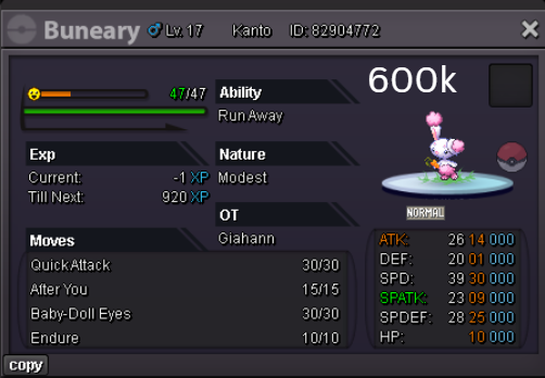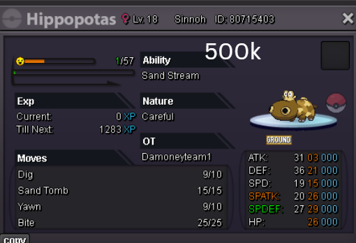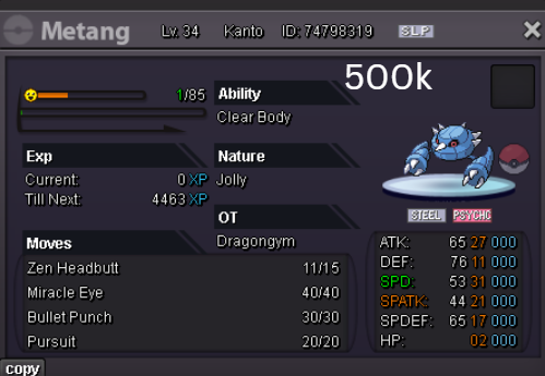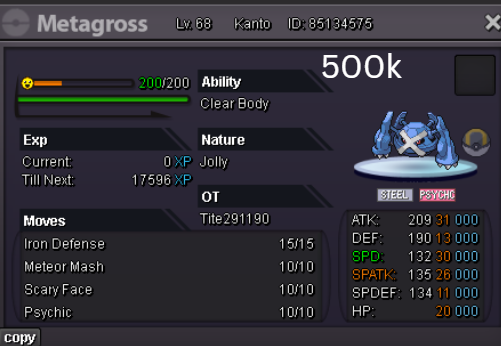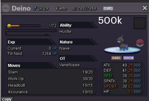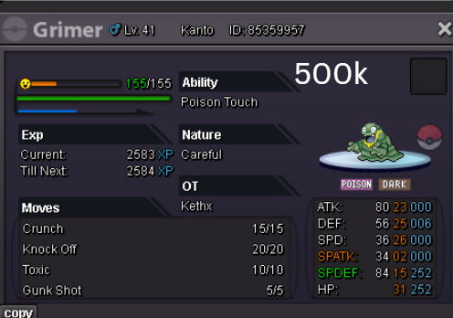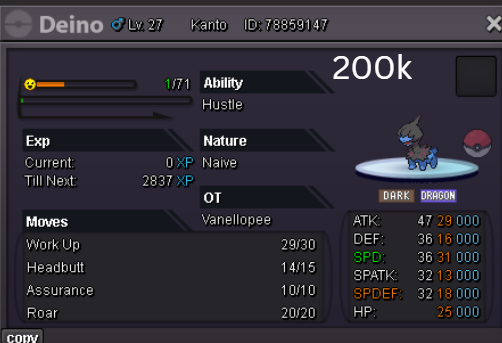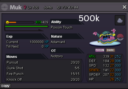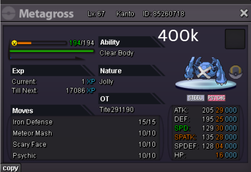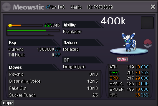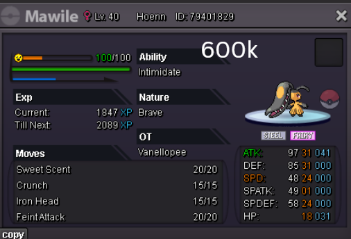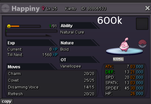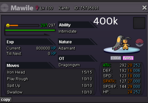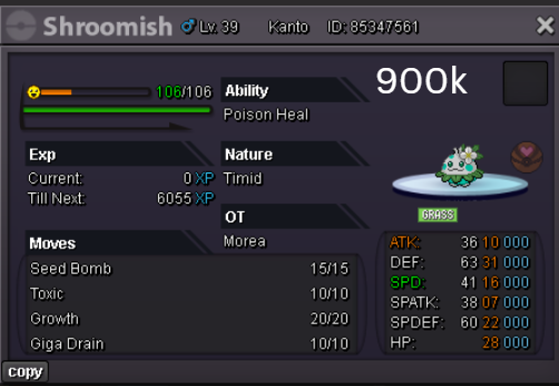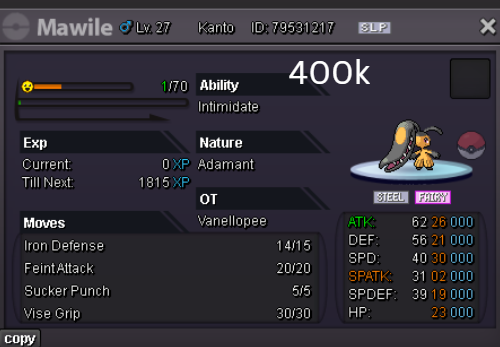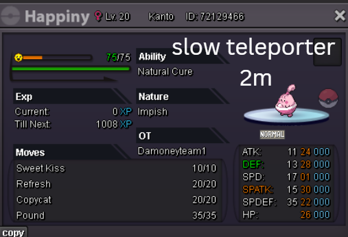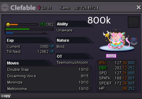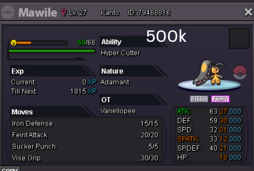 Welcome to my personal shop "I will update with new items & pokemons every 2 Weeks" Contact Info In-game: Mavywavy Discord: mavis812 Payments Pokedollar Coin Capsule = 500k Reroll Ticket = 750k Nature Reroll Ticket = 375k Rare Candy = 6k Categories Items Boss Team Bundles Fully Trained Pokémon < 1m 1m - 5m From 5m+ Untrained Pokémon Shiny & Special Pokémon < 1m From 1m+ Clefable Epic Magic Guard Unaware DM today to place your order and start your Transylvania journey!1 point