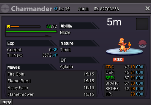 * { font-family: "Inter", sans-serif; } .keita-margin { margin-block-end: -0.8rem; } .keita-codeb { background-color: rgba(27, 28, 30, 1); padding: 0px 2px 0px 2px; color: #ebe7e3c4; border-radius: 4px; border: 1px solid rgba(128, 128, 128, 0.48); font-family: "Roboto Mono", monospace; font-size: 90% !important; } .keita-colored-code { color: #15f5ba; font-size: 100% !important; } Combining Search Terms Easily find the exact Pokemon you need by combining search terms. Search Example for a Specific Pokemon: lvl=30 shiny Rattata Finds all shiny Rattata's at level 30. Search for High-Level Pokemon: lvl>70 Charizard Finds all Charizards above level 70. Search for Pokemon by Type and Region: type=Water region=Hoenn Finds all Water-type Pokemon caught in the Hoenn region. Search for Specific Stats: ATK>=28 SPD>=28 Garchomp Finds all Garchomp's with both Attack and Speed IV stats at or above 28. Replace the Pokemon name and edit the level to suit your search needs. Supported Comparers Equality and Inequality: = or ==: Finds exact matches (e.g., lvl=30 finds Pokemon exactly at level 30). != or <>:Finds all that do not match (e.g., lvl<>30 finds Pokemon not at level 30). Greater and Lesser: >: Greater than (e.g., lvl>30 finds Pokemon above level 30). <:Lesser than (e.g., lvl<30 finds Pokemon below level 30). >=: Greater than or equal to (e.g., lvl>=30 finds Pokemon at level 30 and above). <=:Lesser than or equal to (e.g., lvl<=30 finds Pokemon at level 30 and below). Combining & Excluding Combining: space or , or &: Used as AND to combine different conditions (e.g., shiny,g=f lvl>=50 Gardevoir finds shiny female Gardevoir's at level 50 or higher). |: Used as OR to match multiple filter sets (e.g., type=fire | type=electric finds all Fire or Electric type Pokemon). Excluding: !: Put ! in front of a term to exclude it (e.g., !shiny finds all non-shiny Pokemon). Works with booleans (shiny, form, legendary, item and with bare names (!Golduck). Multi-words You cannot type raw spaces inside a value (e.g., m=String Shot). Spaces are parsed as AND. In this example, it would search for m=String and then treat Shot as a separate string to look for Pokémon names. You have to use quotes ("") or underscores (_) to search for the exact names (e.g., m="String Shot", m=String_Shot). In most cases, you can just search for part of the name to get the results you are looking for. Detailed Filter Options Below are the filter options you can use to narrow your search results, along with their aliases and how to use them: Filters Usable Without a Comparer shiny (shiny, s) - Filter for shiny Pokemon. form (form, f) - Filter for themed Pokemon. Legendary (legendary, l) - Filter for Legendary Pokemon. Pokemon Name (name, pokemon, poke) - Filter by the name of the Pokemon. Pokedex ID (dex, d)- Filter by the Pokedex identification number. Borrower Name (borrower, b) - Filter by the name of the Borrower. Selected (sel, select, selected) - Filter for selected Pokemon. item (item, i) - Filter for Pokemon with held items. Basic Filters UID (uid, u) - Unique identifier of a Pokemon. Example: uid=53256 OT - Name of the person who caught the Pokemon. Example: OT=Username Level (level, lvl, lv) - The level of the Pokemon. Example: lvl=100 Ability (ability, a) - The ability of the Pokemon. Example: a=Protean Nature (nature, n) - The nature of the Pokemon. Example: n=Timid Item (item, i) - The held item of the Pokemon. Examples: i=focus_sash, i=smoke_ball Gender (gender, g, sex) - The gender of the Pokemon. Examples: g=m, g=f, g=none Type (type, t) - Type of the Pokemon, such as Fire or Water. Example: t=Fire Region (region, r) - The region where the Pokemon was caught. Example: r=Kanto Hidden Power (hiddenpower, hi) - The hidden power type the Pokemon has. Example: hi=Ground Move (move, m, skill) - The move of the Pokemon. Example: m=Tackle Form (form, f) - The form of a Pokemon. Examples: f=halloween, f=smr, f=valentine, f=shadow, f=pnk, f=chroma Generation (generation, gen) - The generation in which the Pokemon was first released. Examples: gen=1, gen=kanto, gen=paldea, gen=6, gen=alola CaughtBall (caught_ball, caughtball, ball) - The ball the Pokemon was caught with. Examples: ball=Pokeball, ball=Master_Ball Stats Filters ATK (atk, attack) - ATK IV of the Pokemon. Example: ATK>=28 DEF (def, defense, defence) - DEF IV of the Pokemon. Example: DEF>19 SPD (spd, speed) - SPD IV of the Pokemon. Example SPD=31 SPATK (spatk, specialattack) - SPATK IV of the Pokemon. Example: SPATK>=28 SPDEF (spdef, specialdefense, specialdefence) - SPDEF IV of the Pokemon. Example: SPDEF>=20 HP (hp, hitpoints) - HP IV of the Pokemon. Example: HP=31 IVs (all, alliv, allivs, ivs) - Every IV of the Pokemon. Example: ivs>20, all>=10 ATKEV (atkev, attackev) - ATK EV of the Pokemon. Example: ATKEV=252 DEFEV (defev, defenseev, defenceev) - DEF EV of the Pokemon. Example: DEFEV=0 SPDEV (spdev, speedev) - SPD EV of the Pokemon. Example SPDEV=252 SPATKEV (spatkev, specialattackev) - SPATK EV of the Pokemon. Example: SPATKEV>=140 SPDEFEV (spdefev, specialdefenseev, specialdefenceev) - SPDEF EV of the Pokemon. Example: SPDEFEV>=100 HPEV (hpev, hitpointsev) - HP EV of the Pokemon. Example: HPEV=6 Expiration Time for Borrowed Pokemon Expiration (expiration, expires, expire, e) - Remaining time before a borrowed Pokemon will automatically return. Units: days (d), hours (h), minutes (m), and seconds (s). Examples: e<1d1h1m1s, e<1d3h, e>40s2 points