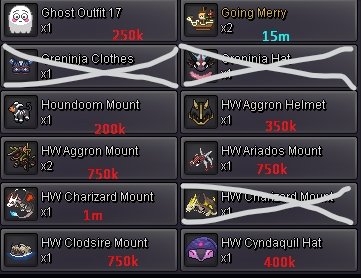 | - - | - - | - - | - - | - - | - - | [THE GOLDEN MAGAZI] | - - | - - | - - | - - | - - | - - | < - - - - - - - - - - - - - - - - - - - - [GIVEAWAY] - - - - - - - - - - - - - - - - - - - - > Hello Guys, We Want To Show You Our Cosmetics Here And Maybe If You Like Anything We Can Make A Deal?! < - - - - - - - - - - - - - - - - - - - - [SHOP SOS] - - - - - - - - - - - - - - - - - - - - > < - - - - - - - - - - - - - - - - - - - - [MUST READ] - - - - - - - - - - - - - - - - - - - - > [SOS : Please Read The ''NOT AVAILABLE'' List (Down) Before Buy Anything You Want] Makiz Cosmetics : [Shop Status] - [Online, Send For A Deal] - [Updated Recently] [Contact : (In Game Name : Makiz / Discord : Makiz_OFFICIAL) - Server ATM : Silver] Grahamsito's Cosmetics : [Shop Status] - [Online, Send For A Deal] - [Updated Today] [Contact : (In Game Name : Grahamsito / Discord : Grahamsito) - Server ATM : Silver] Payment Methods : Pokedollars Coin Capsule (450k) IV Re-roll Ticket (700k) Nat Re-roll Ticket (350k) Rare Candy (5k) [Makiz X Grahamsito] NOT Available Cosmetics : [LIVE] - (Xmas Dragonite Mount, Deadpool Set, Zero Set) BIGGEST SHOP's BUYERS EMOJIS REWARDS LIST Shop Uptades Logs1 point