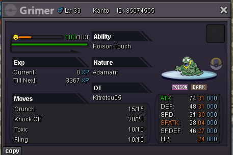 Sold Greninja to Monstercreaek End Point: 96 hours (after start price is met) Insta Price: N/A Minimum Raise: 100k Accepted Payments: Pokedollars, Coin Capsules (x1 Coin Capsule = 480k), IV Reroll Tickets (x1 IV Reroll Ticket = 700k), Nature Reroll Tickets (x1 Nature Reroll Ticket = 350k) Hp-Dragon Sold Alolan Grimer to Setsukaaa End Point: 96 hours (after start price is met) Insta Price: N/A Minimum Raise: 100k Accepted Payments: Pokedollars, Coin Capsules (x1 Coin Capsule = 480k), IV Reroll Tickets (x1 IV Reroll Ticket = 700k), Nature Reroll Tickets (x1 Nature Reroll Ticket = 350k) Important Reminders: This is a Cross Server auction. If you intend to purchase with an alt account, specify the account alongside your bid. If a bid is received in the final 15 minutes of the auction, the end point will be delayed by 15 minutes from that bid, and will be delayed by 15 minutes for each new bid thereafter, until the current offer has been held for a full 15 minutes. Happy Bidding!2 points
