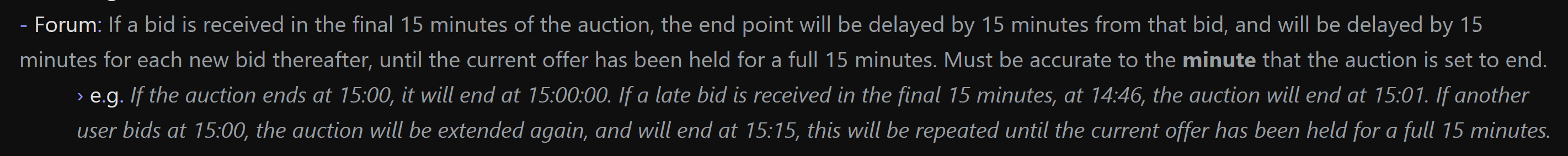 Hello @Shin2007 as discussed privately, the 7m bid by @Dradon89 was a false bid. @Dradon89 you have been punished accordingly as you have broken the Auction Rules @Huyhung1997 after discussion with the auctioneer, we would like to give you the opportunity to follow up with your 4.2m bid as that was the last valid bid. You are not obligated to do so. If you no longer have interest in the Greninja, no further action will be taken and @Shin2007 is welcome to re-auction the Greninja. Let me know what you decide to do below. I look forward to your response. - Rebilak1 point