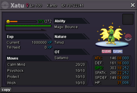 What about to have a NPC that I can post my pokes and put the price for it? It can "take a %" as a service because the user opted to not use the chat for. Poke name filter and ability as it is the new box now (what was a great addition, kudos on that) Example: Pikachu | Static | lvl 20 | 50k Than you can click and see the poke details, buy or not. Maybe after a limit time, like 7 days, it comes back to your box to not flood the NPC list, also a limit posted pokes per account to avoid tons of poke with insane value from the same person. EDIT: === And just to remember, it is not to REPLACE the trade chat and doesn't need to all the listed features. It is just another way to sell without the active chat flooding. The way it is now, probably some people in a different timezone would never buy the pokes from you And I would love to hear the why from the people that think that it would not be good, maybe I'm not seeing something import. So, please share.2 points
