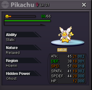 [ MAGIKARP {25+ EPIC/ ADAMANT/ HP GROUND} #1 ] - Start Point: 250K - End Point: [48 hours after start] - Insta: N/A - Min. Raise: 50k - Accepted Payment(s): Poke dollars / Cc = 500k - Server Name: Gold [ ESPEON {30SPD/ 27SPATK/ 31 SPDEF/ TIMID / ABILITY: MAGIC BOUNCE} #2 ] - Start Point: 500K - End Point: [48 hours after start] - Insta: N/A - Min. Raise: 100k - Accepted Payment(s): Poke dollars / Cc = 500k - Server Name: Gold [ DEINO {22+ EPIC/ TIMID} #3 ] - Start Point: 250K - End Point: [48 hours after start] - Insta: N/A - Min. Raise: 100k - Accepted Payment(s): Poke dollars / Cc = 500k - Server Name: Gold [ PIKACHU {23+ EPIC / TIMID/ ABILITY LIGHTNING ROD} #4 ] - Start Point: 300K - End Point: [48 hours after start] - Insta: N/A - Min. Raise: 50k - Accepted Payment(s): Poke dollars / Cc = 500k - Server Name : Gold [ STAR WARS PAWNIARD {CALM / HP FLYING} #5 ] - Start Point: 1M - End Point: [48 hours after start] - Insta: N/A - Min. Raise: 100k - Accepted Payment(s): Poke dollars / Cc = 500k - Server Name: Gold [ DELPHOX {29SPD/ 31SPATK/ 30 SPDEF/ 31 HP/ TIMID / HP STEEL} #6 ] - Start Point: 800K - End Point: [48 hours after start] - Insta: N/A - Min. Raise: 100k - Accepted Payment(s): Poke dollars / Cc = 500k - Server Name: Gold Important Reminders - This is a Gold Server auction. You may bid from any server but you must transfer to Gold Server upon winning the auction. - If you intend to purchase with an alternate account or from other server, please specify the account name and/or server name alongside your bid. - 15 minutes rule is applied. (If a bid is received in the final 15 minutes of the auction, the end point will be delayed by 15 minutes from that bid, and will be delayed by 15 minutes for each new bid thereafter, until the current offer has been held for a full 15 minutes) - Please check the Trade Rules and Auction Rules if you are new to trading in PRO. Also again, thank you for the support to all bidders and viewers, Enjoy the Auction, Happy Bidding.1 point