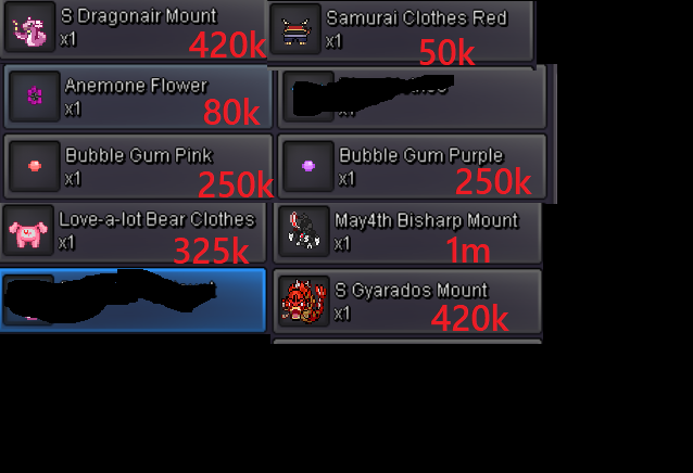 Welcome to Clumsygirll's pvp/pve shop 1. Prices are negotiable unless there already is a sale (but offer fair) 2. The prizes for items and cosmetic are NOT negotiable. 3. Fake offers will be reported 4. I Have every right to decline your offer (some prizes arent negotiable) 5. No discussions, or any type of non business related comments are allowed wanna give advice that's welcome (keep that in-game) 6. Once you offer, it's final (you can't go back, so be sure to check if you have the amount of money required before the purchase. Payment Options: Coin Capsule / CC (490k) Pokedollars Rare candy (5k each) Contact options: Contact me on forum in game Clumsygirll, or via Discord Vanity1996_ Trained Pokemons: Untrained Pokemons: Boss Pokemon's Cosmetic's2 points